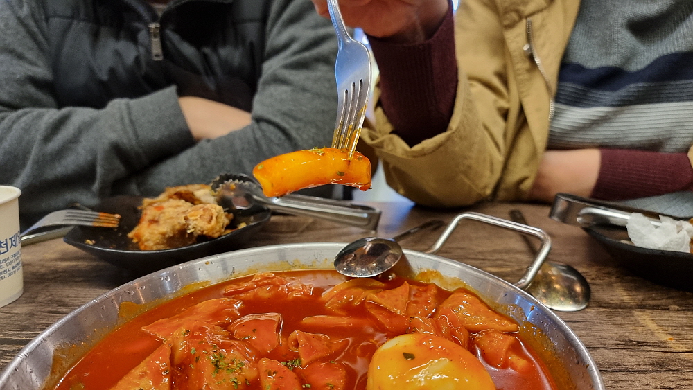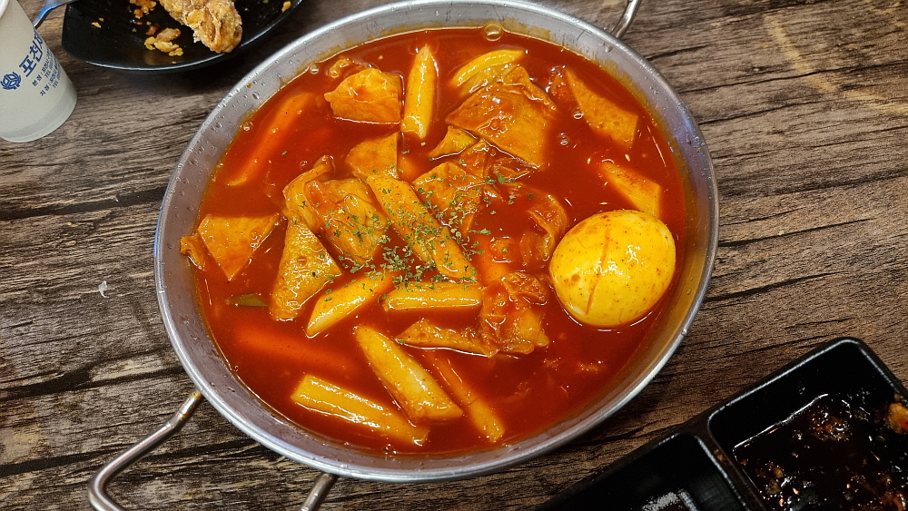 안주 겸 저녁으로 주문한 후라이드 치킨은 얼마 가지 못했다. 30분도 되기 전에 없어졌다. 하긴 이 정도 천천히 먹은 것도 장한 일이다. 생맥주 다음 주자로 주문한 소주는 아직 2/3이나 더 남았고, 배도 덜 찼기 때문에 우리는 옆 테이블 손님들이 그렇게나 맛나게 먹던 국물떡볶이를 주문했다. 특별히 안 좋은 기억이 있어 싫어하는 사람 빼고 한국 사람 중에 떡볶이를 싫어하는 사람은 없을 것이다. 이집은 기성품 양념을 사용해서 떡볶이를 만드는 것 같았다. 하지만 그 맛이 아주 좋았다. 어쩌면 본사에서 이 양념도 보내주는 것일 수 있다. 솔직히 자신없으면 이렇게 하는 편이 훨씬 손님 입장에서 고마운 일이다. 이래 저래 좋은 가격에 거하게 취하며 배부른 저녁이었다.