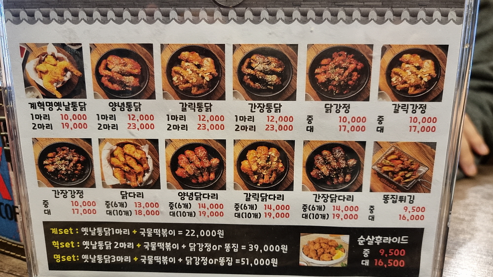 우리나라 사람들이 하루에만 후라이드 치킨을 200만 마리나 먹어 치운단다. 대단한 양이다. 그러니 하림같이 닭을 공급하는 회사가 연일 승승장구 대기업이 되는 것이겠지... 엄청난 양의 후라이드 치킨을 먹는다는 것은 그만큼 사람들이 튀긴 닭을 좋아한다는 말일 것이다. 그래서인지 후라이드 치킨은 선택의 폭이 넓다. 싼 가격부터 비싼 메뉴까지 스펙트럼이 넓은 것이다. 싼 치킨이라 해도 나름의 경쟁이 있다. 얼마 전 송우리에 생긴 가마치 통닭이나 장터 치킨 같은 저렴한 치킨집들이 있는데 이번엔 새로 우체국 근처에 계혁명이라는 가성비 좋은 치킨집이 새로 문을 열었다.
