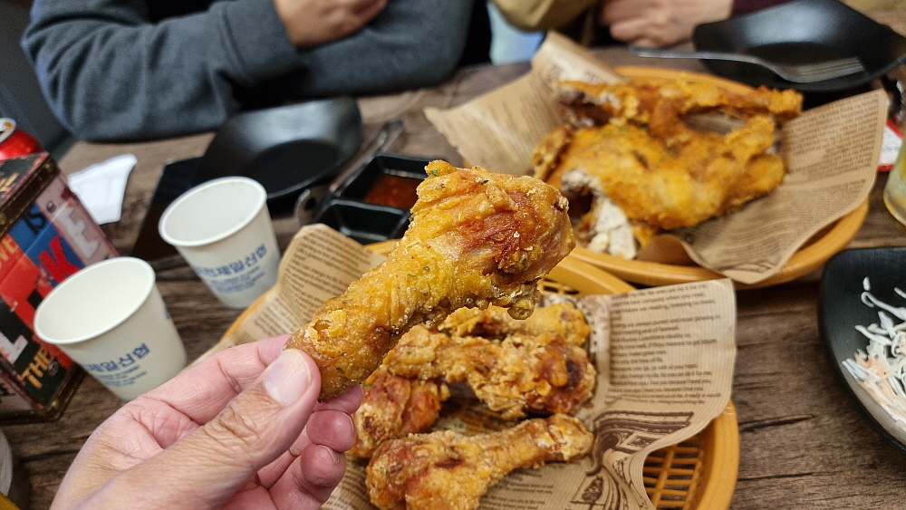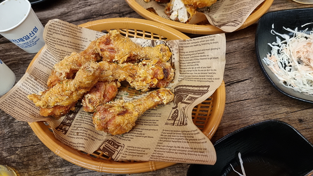우리는 후라이드 치킨과 닭다리 6조각을 주문했다. 이렇게 시켜도 25,000원 밖에 안 된다. 얼마나 부담이 없는 가격인가? 사실 가격이 좀 덜 나가면 맛에서는 관대해지는 법이다. 어지간하면 다 용서가 된다. 그런데 막상 주문한 닭이 나와 먹어보니 "에잉?" 하면서 고개를 갸우뚱할 정도로 좋은 맛이었다. 기름의 온도를 잘 맞춰서 진득할 정도로 기름진 튀김이 되지 않았고, 닭의 잡내가 전혀 없으며 겉은 바싹하고 속은 촉촉한 후라이드 치킨의 전형적인 잘 만든 맛이 그대로 나더라는 것이다. 이렇게 훌륭한 치킨이 이런 가격이라는 것이 고맙고 감사했다. 세상은 넓다. 이렇게 가성비 좋은 치킨을 만날 수 있을만큼 말이다.
