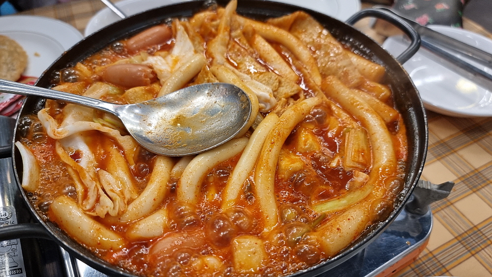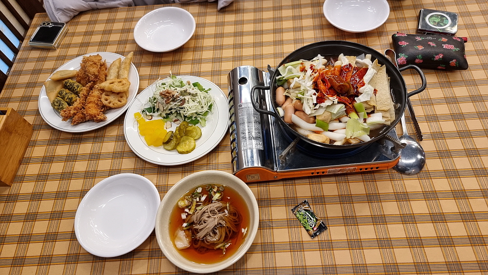에피타이저로 먹을 스프까지 있으니 제대로 된 구색은 다 갖추고 있다. 잘익은 떡볶이와 튀김은 어느 분식집에서나 늘 인기가 좋은 아이템 아닌가? 어느덧 식당은 만석이 되었고, 우리 역시 즐겁고 맛나게 식사를 하게 되었다. 조금 덜 달면 좋겠다는 생각은 들었지만 우리가 직접 만든 것이니 그것도 나름 의미가 있는 것 같고, 다만 메밀면이 냉장고에 들어 있어 한 번 데치면 좋겠다는 생각이 들긴 했다. 하지만 이런 가성비에서 더 뭘 바라겠는가? 즉석 떡볶이가 먹고 싶다면 다른 것 다 무시하고 여기서 떡볶이만 주구장창 먹어도 이득이 될 것 같다.