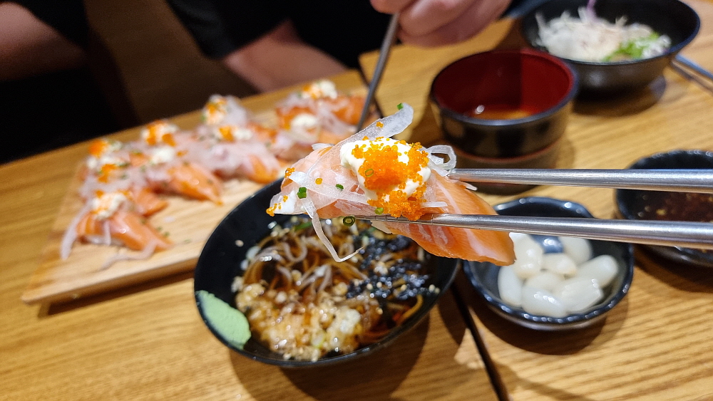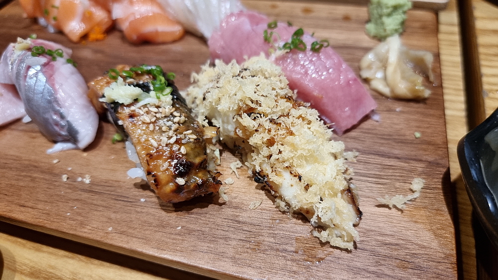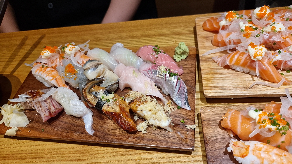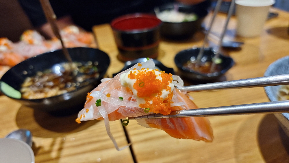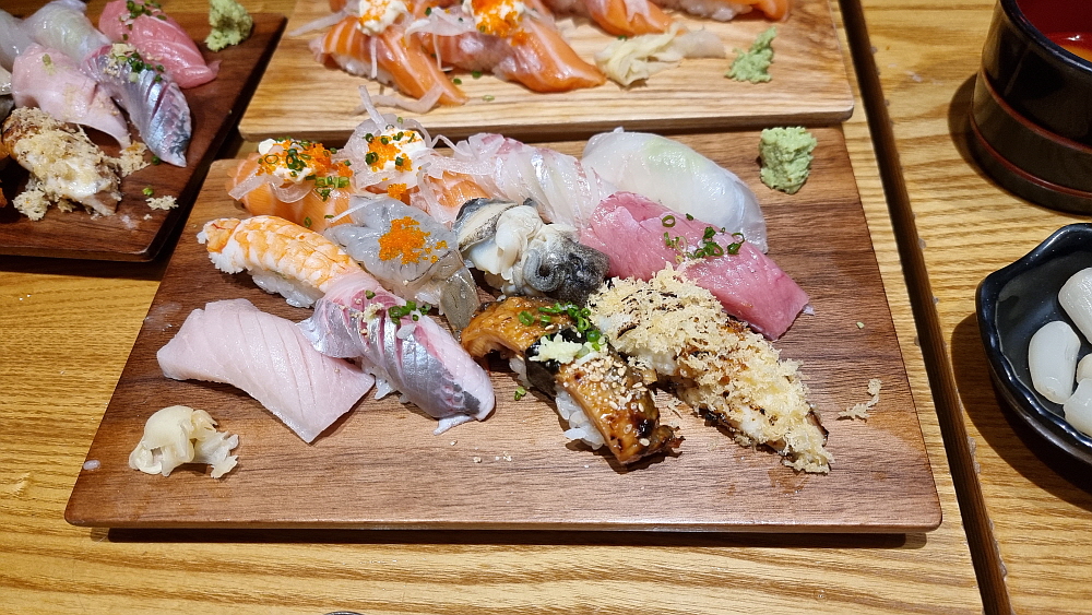 먼저 연어초밥과 우동, 소바가 함께 나왔다. 연어초밥은 젊은 사람들이 좋아하는 것으로 알고 있다. 개인적으로는 달달한 연어의 식감을 그닥 즐기지 않는 편이다. 연어는 이렇게 날것으로 먹기 보다는 오븐 같은데 익혀서 먹는 것이 더 맛이 좋은 것 같다. 아무튼 고급진 연어 스시는 보기만 해도 식감을 자극하는 것은 맞다. 분홍색이 예쁘기까지 한 연어 초밥도 그렇게 비싼 편은 아니다. 그러니까 여긴 나름 합리적인 가성비의 스시집인 셈이다. 그리고 우동이 정말 맛이 좋았다. 일본식 우동이라는 말이 무색하지 않을 정도로 전문가의 솜씨가 담겨 있는 깊은 맛의 국물이 참 좋았다.