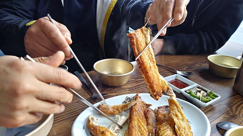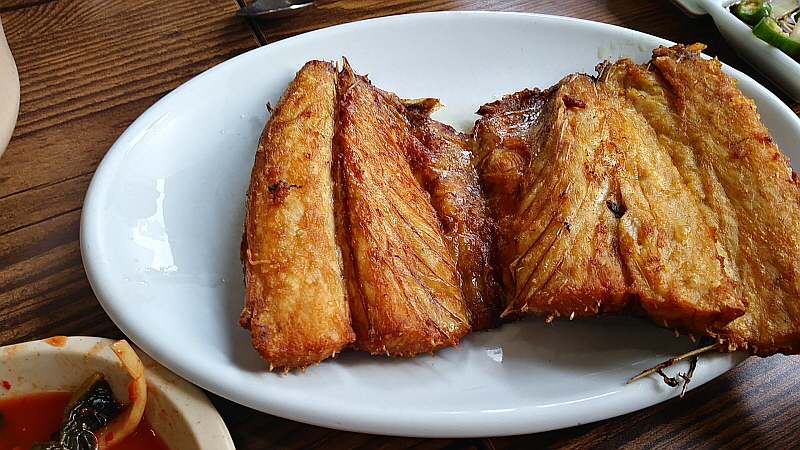 그래서 결국 만나게 된 인천의 삼치구이는 처음 내 예상과는 사뭇 달랐다. 이런 이것은 구이가 아니라 튀김이었다. 요즘 유행한다는 팬 위에 식용유를 마치 튀김만들 듯 듬뿍 넣고 그 위에 야채튀김이나 오징어 튀김처럼 튀기 듯이 굽는 그 생선 요리였다. 아~ 이건 아닌데... 내가 생각한 삼치 구이는 연탄불 위에 어머니가 구워 주시던 자반 고등어 같은 것이었는데... 이런 튀김 같은 생선이 아니라 담백하고 비린내가 폴폴 나는 생선 그 자체였는데... 물론 내가 말하는 방식으로 생선을 굽게 되면 힘도 들고 비린내도 많이 난다. 하지만 우리가 아는 생선 구이는 그런 것 아니었나? 종로통에서 일을 할 때도 늘 아주머니들이 연탄불 위에 석쇠를 뒤집어 가면서 탁탁 소리 내고 굽던 것이 생선구이였는데 여기는 마치 휘경동의 파전처럼 튀겨 내왔다.