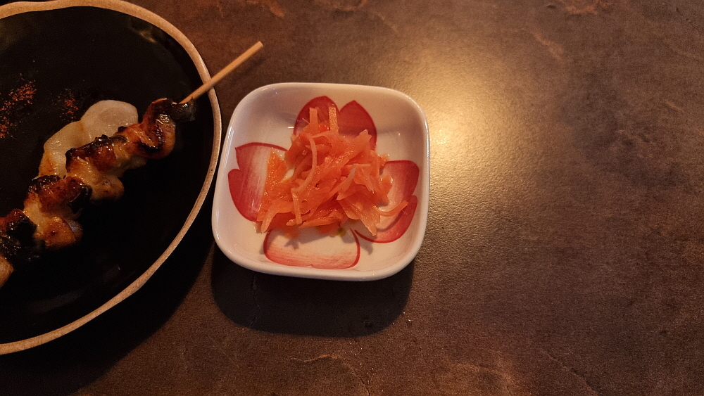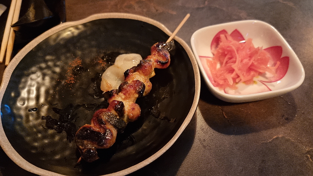 꼬치 한 개의 가격이 5,000원 가까이 되는 몸값이 제법 비싼 우나기, 즉 민물장어도 한 개 주문했다. 생긴 것은 그냥 어묵을 말아 놓은 것 같지만 맛은 정말 좋았다. 이것도 인기 메뉴 중 하나라는데 그 이유를 알 것 같았다. 거기에 저린 생강을 함께 먹으니 고급 장어 집에서 먹는 것 같은 느낌마저 들었다. 이런 일식 주점은 정말 착한 가게로 상을 주어야 한다. 나올 때 계산을 하니 맥주를 세 잔이나 먹었는데도 3만 원 정도 밖에 돈이 들지 않았다. 이렇게 저렴할수가... 집 근처에 이런 집이 없다는 것이 삶의 질을 떨어트리는 요인 중에 하나가 아닐까 하는 생각을 할 정도로 참 만족스런 2차 자리였다.