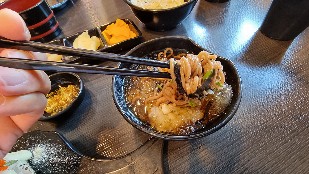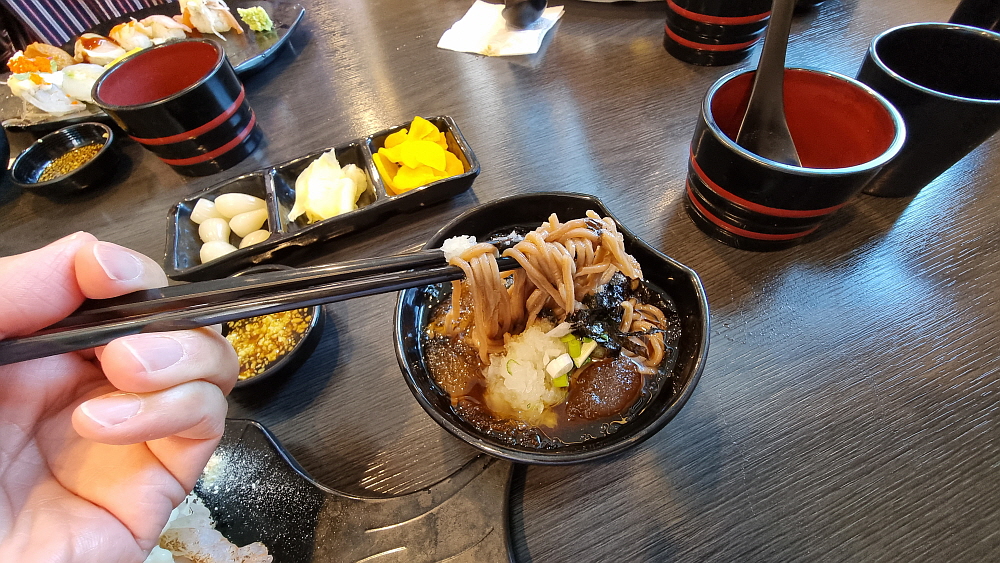 이런 더운 날에 시원한 소바가 한 몫을 한다. 메밀로 만든 여름을 상징하는 소바는 스시와 참 잘 어울린다. 그래서 어디가나 스시집에선 늘 소바가 함께 있는가 보다. 올 여름에도 츠유에 찍어 먹는 소바 참 많이 먹을 것 같다. 스시로 점심을 하면 다 먹어도 뭔가 포만감이 적고 안 먹은 듯한 아쉬움이 있다. 하지만 오후 내내 그렇게 허하지 않고, 이상하게도 든든한 느낌이 든다. 아마도 그래서 일본 사람들도 그렇게 점심으로 많이 먹는가 보다. 사실 여기 와서 느낀 것인데 점심보다는 저녁에 와서 술 한 잔 하기에 더 좋은 집이 여기인 것 같다. 나중에 한 번 도전해 보는 것으로 ...
