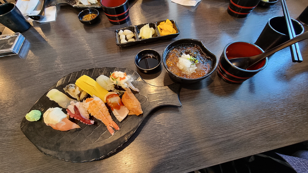 돼지고기나 소고기에 대한 욕구가 크지 않은 사람에게 가장 인기있는 점심 메뉴는 무엇일까? 김치찌개나 된장찌개 같은 한식도 좋지만 생선초밥처럼 전문가의 터치가 느껴지는 일식이 제일 먼저 떠 오른다. 일본에선 초밥만 만드는 장인들을 TV 특집프로그램에서 방송할 정도로 좋아한다. 만들기 어렵다는 말도 될 것이고, 그만큼 사람들이 좋아한다는 말도 될 것이다. 포천동에도 점심에 갈만한 스시집이 여럿 있다. 그 중에서 이 날 가 본 곳은 새로 문을 연 포천고등학교 입구 부근에 있는 집이다. 이름은 솔스시라는 곳이다.