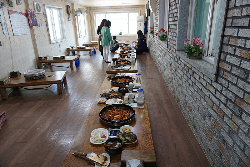 가평하면 또 잣이 유명한데 그래서인지 여기도 간판에 잣이라는 문구를 써 넣었다. 마치 고명을 얹듯이 그렇게 말이다. 우리는 미리 예약을 했기 때문에 들어가 보니 벌써 음식이 다 준비되어 있었다. 20명이 넘는 사람이 들어가도 넉넉할 정도로 실내는 무척 넓었다. 이곳의 특성상 아마도 단체손님들이 많이 오는 듯 했다. 하긴 이 동네 사람이 얼마나 된다고 이렇게 큰 식당들이 다 장사가 될까 싶다. 다들 외지에서 오는 사람들이겠지...닭갈비로 점심 메뉴는 이미 정해져 있었기에 다른 음식 없이 닭갈비가 인원 수대로 놓여 있었다. 하지만 왠지 나는 가게 입구에 써 있던 말, 막국수 라는 메뉴에 맘이 더 끌렸다.
