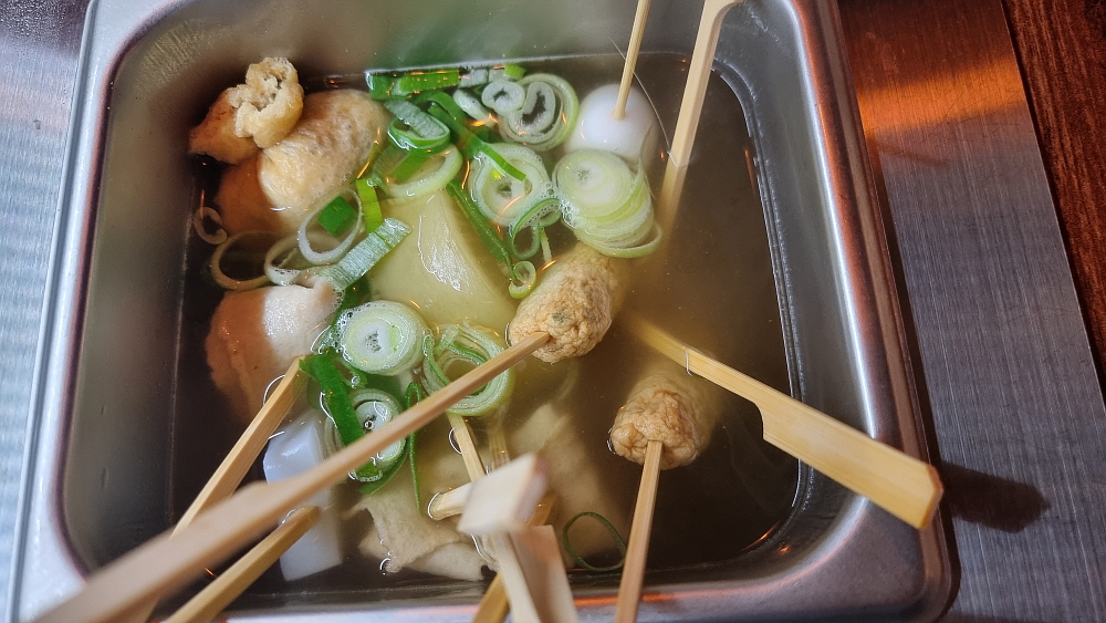 원래 이곳은 참치애난이라는 저렴한 참치집이었다. 하지만 코로나 이후 참치 가격이 오르면서 더 이상 저렴한 참치집으로는 운영이 어려웠던 것 같다. 아무튼 그 때 당시의 주인이 그대로 이 오덴집을 하는 것으로 보였다. 참치집보다는 훨씬 깔끔하고, 산뜻하면서 부담없는 선술집이 되었다. 다소 이른 시간이 간 까닭에 손님들은 없었고, 일본풍으로 만들어진 실내 분위기가 맘에 들었다. 뭘 주문해야 할지 몰라 오뎅 1인분과 메밀소바를 주문했다. 우린 메밀소바 매니아이니 이런 곳에 왔다면 의당 맛을 봐야 했다.