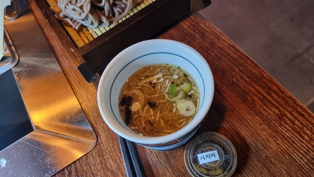 서비스로 내어주는 오뎅 튀김도 괜찮았다. 그리고 대망의 메밀소바 역시 기대를 져버리지 않았다. 일본에서도 먹어 본 적이 있지만 진한 국물 맛이 나는 소스에 면을 담갔다가 먹는 맛은 여름의 상징이다. 시원하고 감칠맛이 듬뿍 들어간 국물은 그냥 먹기엔 좀 달고 짜지만 일본 사람들처럼 면을 다 먹은 다음에 물을 타서 희석하여 먹었다. 아주 좋은 맛이다. 우린 사케를 먹진 않았다. 대신 소주와 하이볼을 마셨다. 요즘 어디가나 하이볼이 인기라 하던데 이집의 하이볼은 달지 않아 먹기 좋았다. 결론적으로 간단히 한 잔하기에 최고의 장소라 하겠다. 하지만 다음에도 혼자 오진 않을 것 같다.