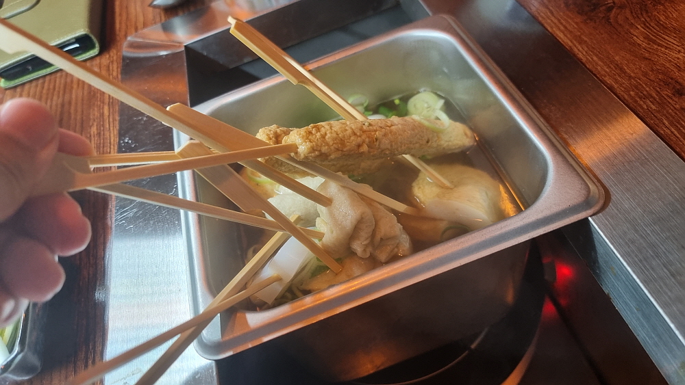 아주 간단한 밑반찬이 나오고 잠시 오뎅이 나오기를 기다렸다. 술잔부터 숟가락까지 모두 일본풍이었다. 체인점인 것 같았는데 본사에서 아주 세심하게 연구한 모양이다. 가격은 저렴한 편이었다. 그리고 단품 메뉴가 많아 혼자 와서 먹기에도 최적인 것 같았다. 먼저 푹 끓인 오뎅이 나왔다. 1인분을 주문했는데도 양이 적지 않았다. 2인분을 주문했더라면 부담스러울 수 있었을 것이다. 오뎅 종류 중에 가장 맘에 든 것은 다이꽁, 즉 푹 익힌 무였다. 다른 사람들은 몰라도 개인적으로 오뎅에 들어간 무만큼은 다른이에게 양보하고 싶지 않은 아이템이다.