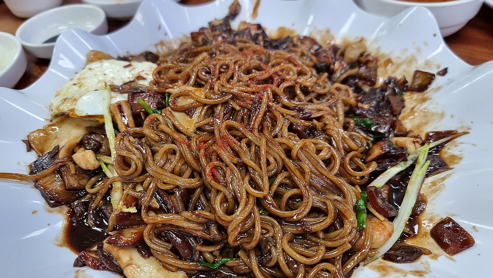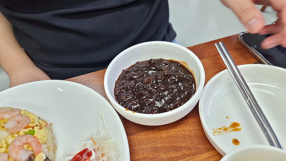 대망의 짜장면은 글쎄 뭐라고 할까? 오랫만에 만나는 제대로 된 옛날 맛의 진한 짜장면이었다. 특이한 것은 면이 쫄면처럼 가늘다는 것인데 가는 면에 양념이 듬뿍 배어 들어 한 젖가락을 먹을 때마다 짜장의 진한 향과 맛이 그대로 입안에 전달되었다. 이런 감동적인 짜장면은 참 반갑고, 고마운 법이다. 해물도 제법 많이 들어갔고, 그리 과하게 달지 않으면서 입에 착 붙는 것이 그저 맛있다는 말이 주문처럼 나오게 만드는 한 그릇이었다. 이렇게 내 돈 내고 사먹지만 맛이 좋으면 기분이 좋고, 행복한 느낌마저 든다. 이집을 선택하기를 잘했다고 우리 스스로 만족해 하면서 그렇게 맛나게 잘 먹었다.
