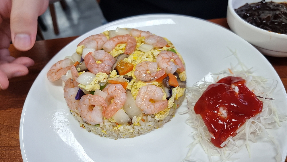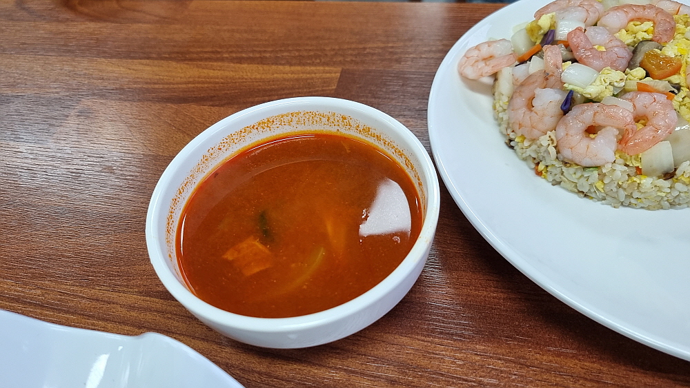 새우볶음밥은 무려 12,000원이나 하는 몸값이 비싼 메뉴였다. 고슬한 밥과 역시나 신선해 보이는 새우가 듬뿍 들어간 중국집의 상징과도 같은 웍질을 통해 나온 제대로 된 볶음밥이었다. 우리는 짜장이냐 짬뽕이냐의 선택만큼이나 짜장이냐 볶음밥이냐를 놓고도 참 고민을 많이 했다. 사람의 취향에 따라 다르겠지만 중국집에 오면 다른 것은 안 시키고 꼭 볶음밥만 고집하는 친구가 있게 마련이다. 비슷한 음식같지만 사실 볶음밥은 주방장의 실력이나 경력에 따라 아주 완전히 다른 음식이 되곤 한다. 이집의 볶음밥은 고슬한 밥알이 잘 살아 있는 제대로 된 것이었다.