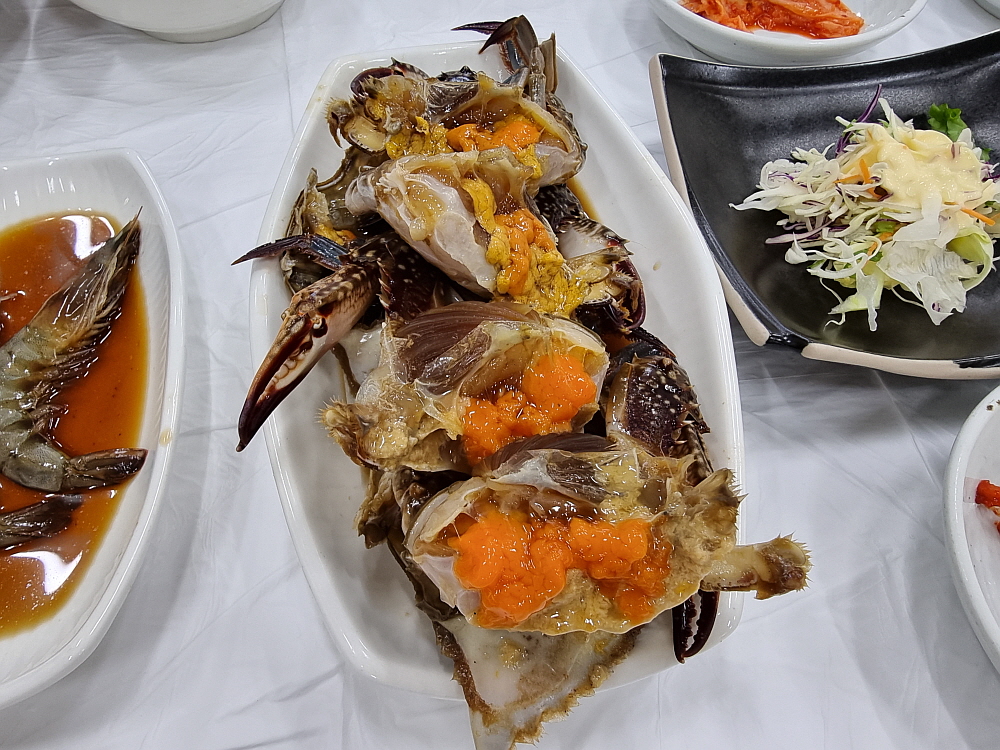 새우장도 있고, 생선구이도 하나 나온다. 잘 양념된 꽃게장을 김에 싸 먹기도 하고, 그냥 밥에 올려 먹기도 한다. 아예 게살을 많이 짜서 비빔밥으로 먹기도 한다. 알이 꽉 찬 꽃게장 껍데기에 밥을 넣어 먹는 재미도 좋다. 안스게장은 짜지 않고, 달지 않아 술안주로도 좋다. 꽃게탕을 먹으면서 게장을 먹으면 금새 밥 한 공기가 뚝딱이다. 진정한 밥 도둑이라 할 수 있다. 그래서 여기 오면 늘 과식을 하게 되는 것 같다. 그런데 이날 보니까 이렇게 암꽃게 메뉴를 주문하는 것보다 그냥 무한리필로 먹는 편이 더 현명한 것 같다. 그거나 이거나 비슷해 보였기 때문이다.