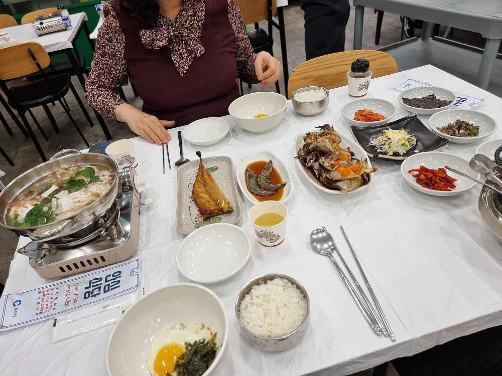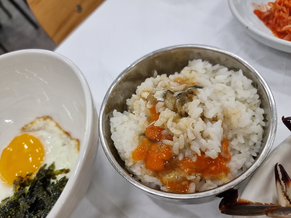 계란 후라이가 들어간 비빔밥용 그릇이 나오는데 거기에 게살을 짜서 넣고 김과 간장을 넣어 비비는 것이 개인적으로는 가장 맛있는 것 같다. 간장양념이 잘 밴 게살은 하얀 쌀밥과 참 잘 어울린다. 이런 조합을 꿀조합이라 하는 것 같다. 이런 좋은 안주에 술 한 잔 빠질 수 없어 소주도 주문했다. 제대로 된 거한 상을 받은 기분이 든다. 누가 뭐래도 이 시간은 참 행복한 순간이다. 꽃게장을 포장해서 가지고 가고 싶다는 생각이 간절했지만 다음날 일정이 있어 참기로 했다.