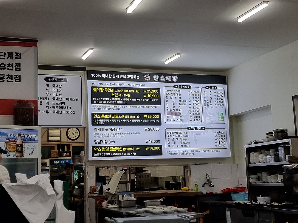 춘천에 갈 때면 거의 늘 남춘천역 근처에서 먹고 마시고 자곤한다. 춘천도 유명한 동네가 많지만 여기가 제일 편하고, 가성비가 좋기 때문이다. 이날도 늘 가던 곳에 숙소를 정하고 저녁을 먹기 위해 나섰다. 남춘천역 근처는 먹자골목이 있다. 그중에서도 우리가 제일 좋아하는 아이템은 바로 간장게장이다. 여기서 10여 년 전 처음 안스게장을 알게 되었고, 그 뒤로 올 기회가 있으면 이집을 찾는 편이다. 시간이 가면서 메뉴나 가격은 조금 변했지만 그래도 맛있는 게장으로 저녁을 먹을 수 있기에 좋은 곳이다.