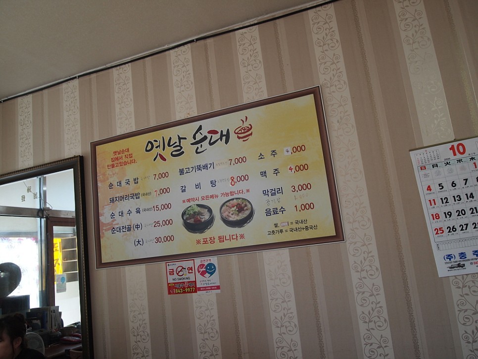 순대국을 워낙 좋아하는 아들 때문에 우린 여행 할 때 여기 저기 많은 지역의 순대국을 먹게 된다. 진해로 내려가면서 만난 이집은 충주 톨게이트를 빠져 나와 얼마 안 가면 만날 수 있는 한적한 시골길에 위치한 곳이다. 이 앞으로 지나면서 몇 번 본적은 있는데 상호처럼 정말 오래된 집 같이 좀 낡아 보여서 그냥 지나치기만 했다. 하지만 순대국은 또 그런 세월의 흔적을 간직한 곳이 더 어울리는 법이니 이번엔 망설이지 말고 들어가기로 했다. 이름하여 옛날순대국이다.
