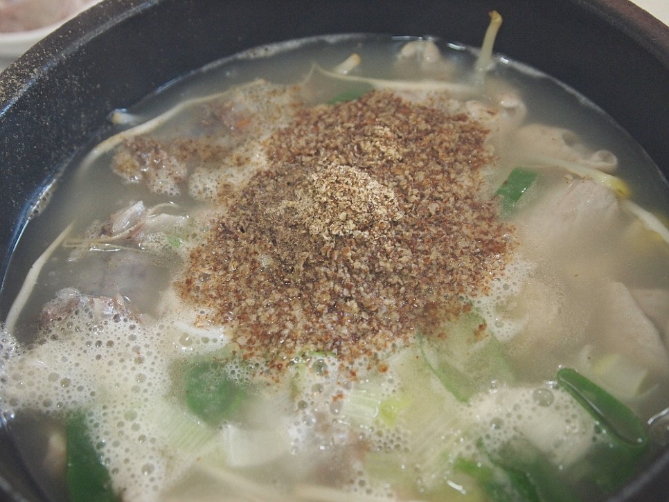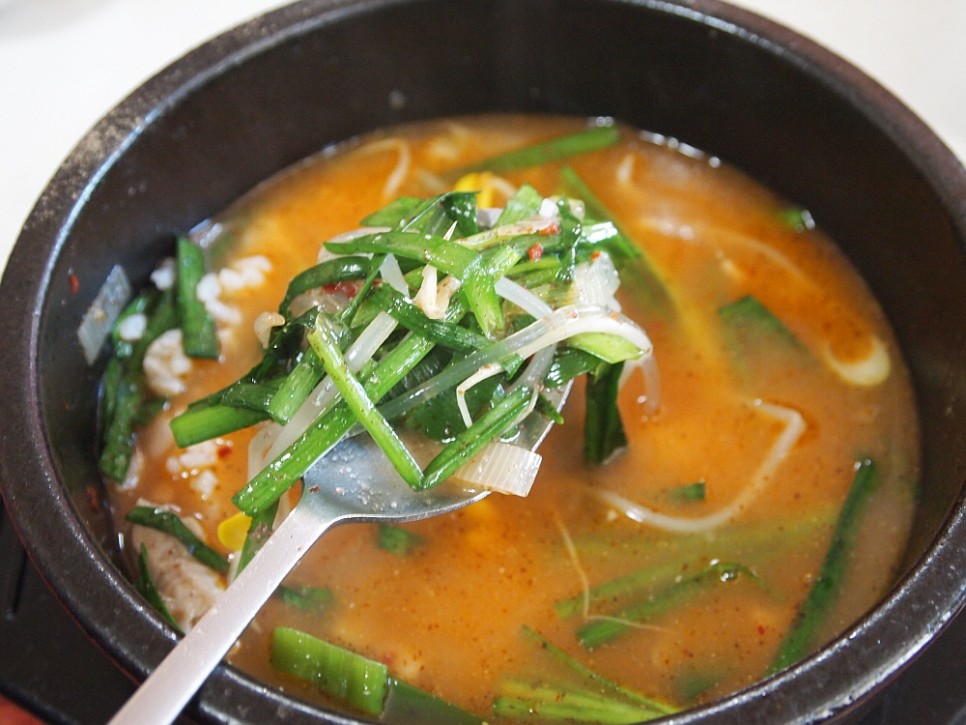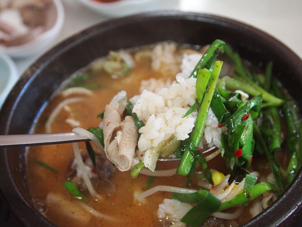 요즘 순대국은 예전과 달리 순대보다 다른 돼지 부속이 더 많이 들어가곤 하는데 이집은 찰순대없이 직접 만들었다는 전통순대가 무척 많이 들어 있었다. 가격만 봐서는 오히려 다른 집들보다 내용이 훨씬 알찬 편이다. 그리고 다른 집들은 없는 부추가 있다. 순대국에 부추를 넣어 먹는 방식이 어쩌면 이쪽 지방의 특징인지도 모르지만 예전에 이렇게 부추를 주는 집은 보지 못했다. 맑았던 국물은 내가 직접 첨가한 여러 양념들 덕분에 먹기 딱 좋은 색으로 변했다. 이젠 정말 국밥 먹듯 후루룩 먹으면 되는 것이다.
