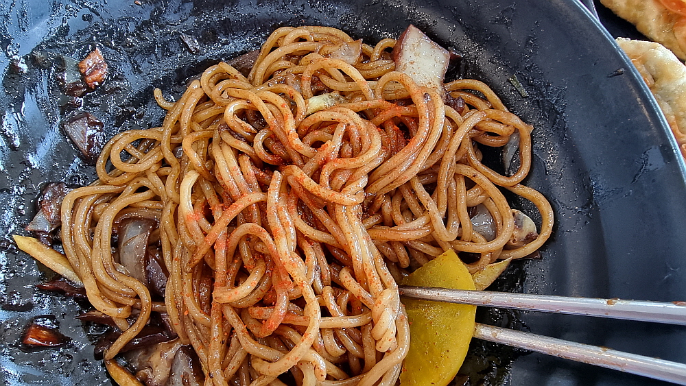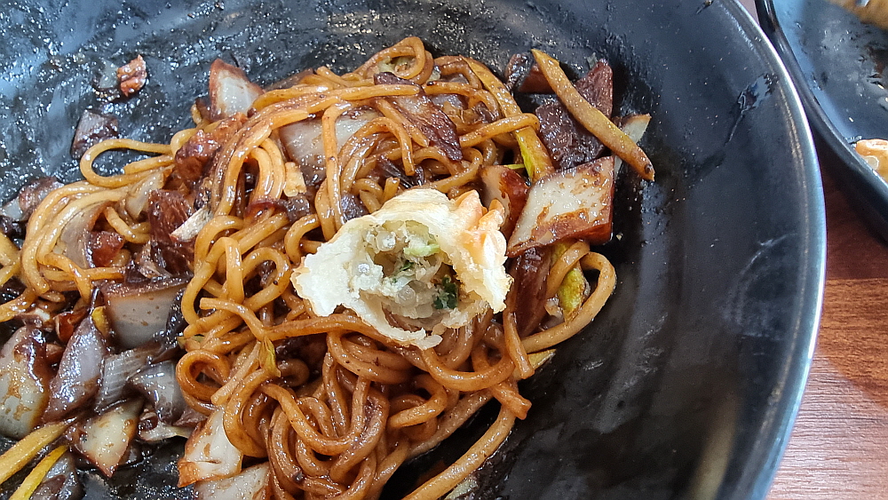 그래도 중국집에 왔으면 짜장면도 맛보야 하는 것 아닌가? 우리는 간짜장을 주문했는데 말 그래도 갓볶은 갓만든 짜장면이 나왔다. 이래서 간짜장이 조금 더 비싸도 일반 짜장면보다 선호하는 사람이 많은 것 아닐까? 기름지고 역시나 짭짤하니 자극적인 간짜장도 중국집을 대표하는 메뉴이다. 이집 간짜장의 맛은 다소 자극적인 것이었다. 하지만 이런 혀를 때리는 맛이 또한 중국요리의 매력이다. 잘 볶은 야채들과 춘장의 향긋한 향이 먹기 전부터 식욕을 마구 자극했다. 간짜장에 들어간 양파는 모양이 그대로 유지된 채로 잘 볶아 주어야 제대로 맛이 나는 법이다.
