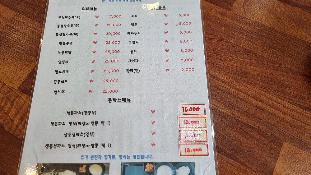 이집이 다른 중국집과 크게 다른 특이한 점은 바로 돈가스를 판다는 것이다. 어울릴 것 같지 않은 이 조합이 의외로 많은 사람들의 선택을 받고 있었다. 이상하지... 근처에 다른 돈가스 전문점도 있는데 왜 사람들은 중국집에까지 와서 돈가스를 주문해서 먹는 것일까? 이유야 먹어봐야 알겠지만 아무튼 손님의 절반 정도는 돈가스를 먹고 있었다. 그런데 아마도 돈가스를 만드는 것이 일반적인 짜장면이나 짬뽕 보다는 오래 걸리는 모양이다. 돈가스 주문한 사람들은 모두 조금 더 기다려야 했다. 종업원이 연신 돈가스는 시간이 더 걸린다는 사실을 알려주고 있었다.