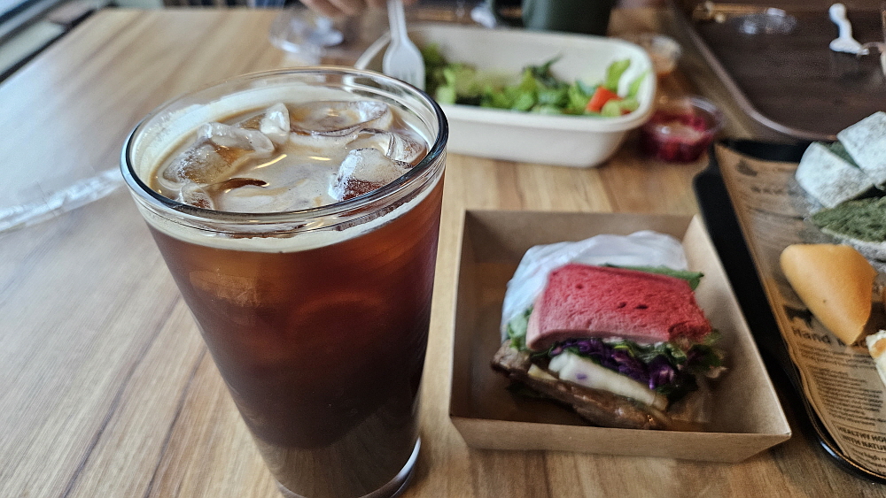 오전 9시 밖에 안 된 이른 주말 아침이었는데도 가게 안에는 만들어진 빵들이 엄청 많았다. 그런데 과연 이 빵들이 우유나 버터, 크림, 치즈 같은 동물성 재료를 쓰지 않고 만들었다니 정말 특이하기는 하다. 아무튼 건강에는 좋을 것이라 생각하며 우리는 커피와 이런 저런 빵들을 사 들고 2층으로 올라갔다. 2층에 올라가야 제대로 된 좌석이 나오기 때문이다. 이런 식단을 좋아하는 사람들이 많은지 아침부터 카페 안에는 손님들이 제법 많았다. 하긴 우리도 그 특이함에 끌려 들어오긴 했지만 말이다. 향긋한 커피와 갓 구운 빵의 냄새는 참 조화가 잘 되는 것 같다.