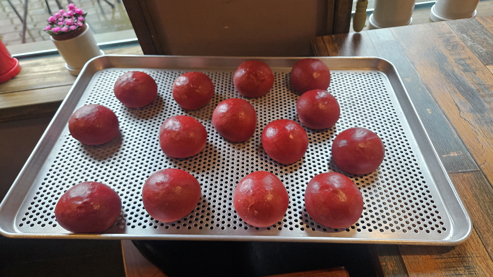 보통 요즘 유행한다는 소금빵은 버터의 향취가 물씬나기 마련인데 이집의 소금빵은 버터가 들어가지 않아 조금은 퍽퍽한 느낌이 있긴 했다. 그래도 건강한 맛이고, 질리지 않는 담백함이다. 제법 많아 보였는데 한 시간 정도 이야기를 하면서 조금씩 먹다보니 빵들이 다 사라지고 없었다. 그 많은 빵들을 누가 먹었나? 건강하긴 한데 이러다가 살이 찌겠다. 비건이라 그런지 색감도 아주 특이했다. 빵들은 뭘로 물을 들였는지 뻘건 빛이 돌고, 소금빵도 쑥을 넣었는지 온통 푸른빛이다. 어쩌다 먹는다지만 이런 특이한 빵은 처음인지라 아무튼 재미있었다. 즐겁고 특이한 아침이다.