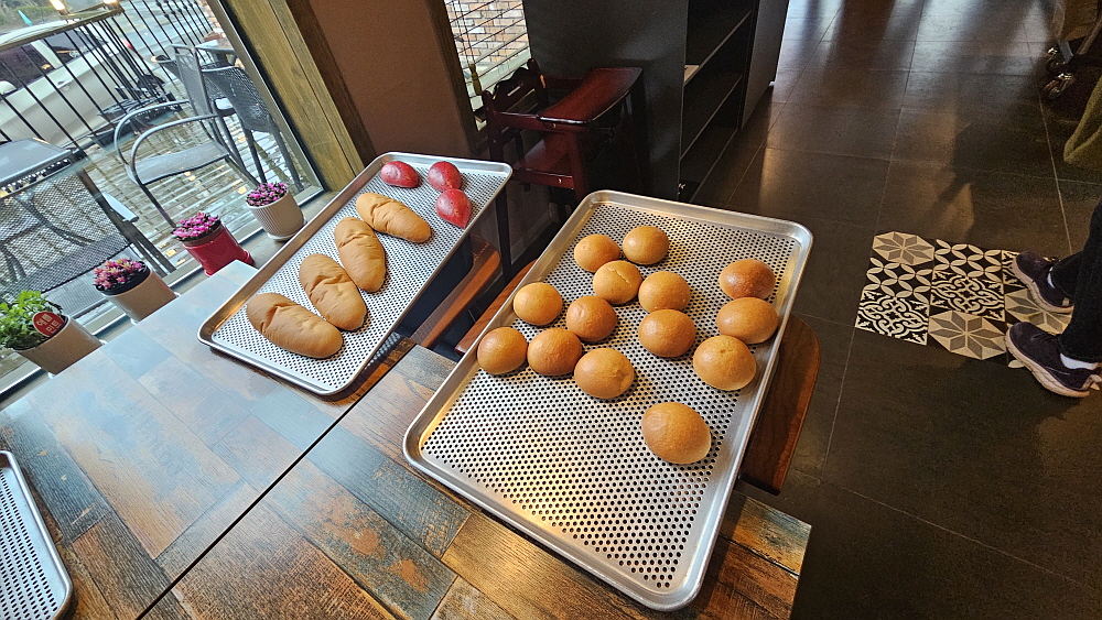 보통 요즘 유행한다는 소금빵은 버터의 향취가 물씬나기 마련인데 이집의 소금빵은 버터가 들어가지 않아 조금은 퍽퍽한 느낌이 있긴 했다. 그래도 건강한 맛이고, 질리지 않는 담백함이다. 제법 많아 보였는데 한 시간 정도 이야기를 하면서 조금씩 먹다보니 빵들이 다 사라지고 없었다. 그 많은 빵들을 누가 먹었나? 건강하긴 한데 이러다가 살이 찌겠다. 비건이라 그런지 색감도 아주 특이했다. 빵들은 뭘로 물을 들였는지 뻘건 빛이 돌고, 소금빵도 쑥을 넣었는지 온통 푸른빛이다. 어쩌다 먹는다지만 이런 특이한 빵은 처음인지라 아무튼 재미있었다. 즐겁고 특이한 아침이다.