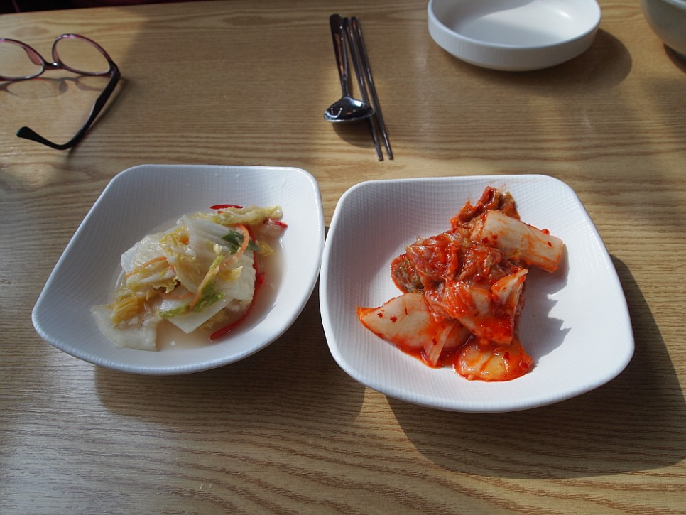 커다란 낙지가 한 마리 들어 간 해물 칼국수는 조금 걸죽한 편이었다. 특이한 것은 김치와 백김치를 함께 내어 준다는 점인데 이상하게도 백김치는 시원하고 감칠맛 나는 것이 좋았는데 김치는 뭔가 이질적인 향이 나면서 별로 였다. 아마도 김치를 만들면서 깍두기 만들 때 넣는 풀물을 너무 많이 넣은 것 같았다. 그래서 발효되면서 이상한 맛으로 변한 것 아닐까 싶다. 아무튼 김치가 좀 그렇기는 했지만 칼국수는 아주 담백하고 건강한 맛이었다. 마치 집에서 끓인 것 같다고 해야 할까?