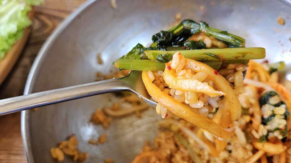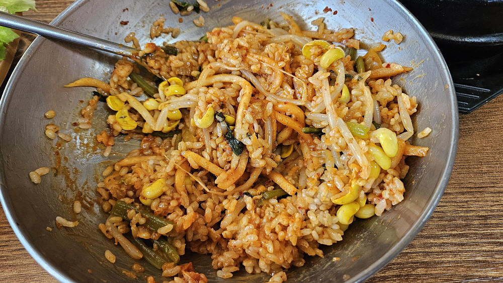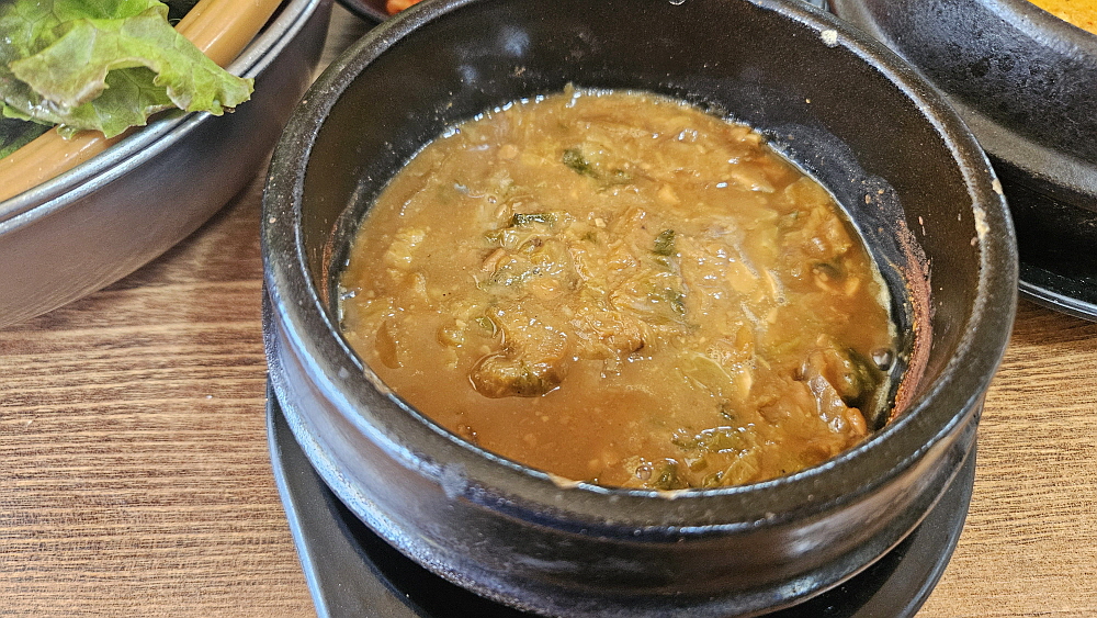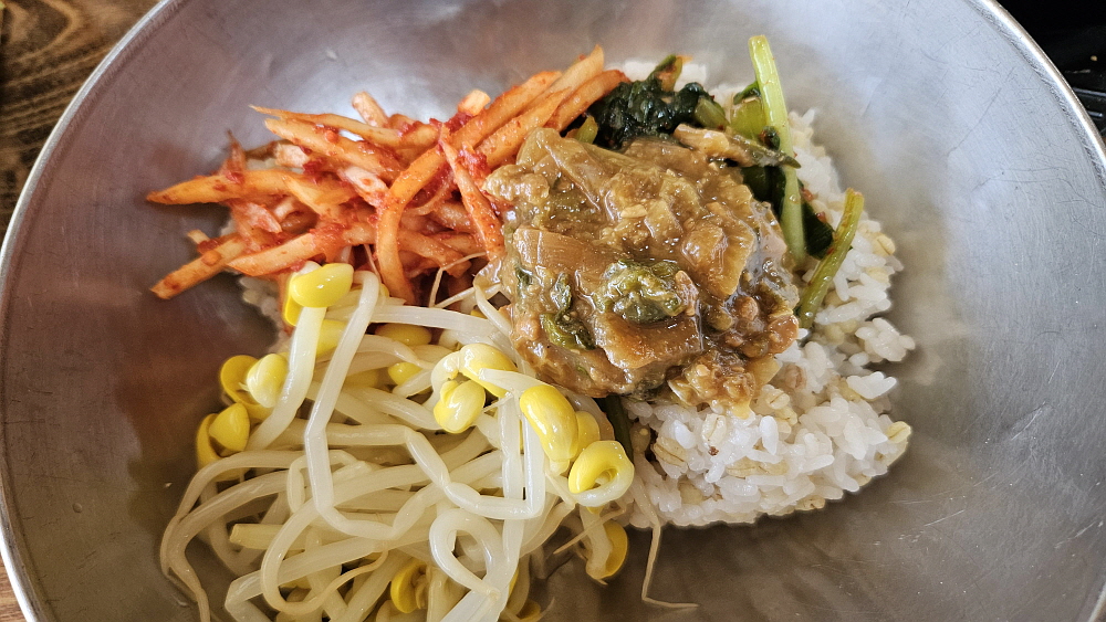 비빔밥을 만들면 비주얼은 좀 그래도 한국 사람이라면 누구나 아는 바로 그 익숙한 맛이된다. 호불호가 거의 없는 영혼의 음식인 셈이다. 밤이고 낮이고 비빔밥 한 그릇만 있으면 아주 만족스러운 식사를 할 수 있다. 탱탱한 보리의 맛이 고추장과 참기름에 격을 올려주었고, 비지찌개 역시 너무나 한국적인 토속적 맛이었다. 대부분의 손님들은 나이가 지긋한 사람들이다. 이런 맛은 아무래도 젊은 취향보다는 이렇게 세월을 좀 아는 사람들이 더 좋아할 만한 것이긴 하다. 영화나 드라마 속에서 비빔밥 먹는 장면이 나오면 입안에 침이 고이고 '나도 꼭 저렇게 해 먹어야지~' 하고 생각하곤 했는데 이날은 그것을 실현한 날이다.