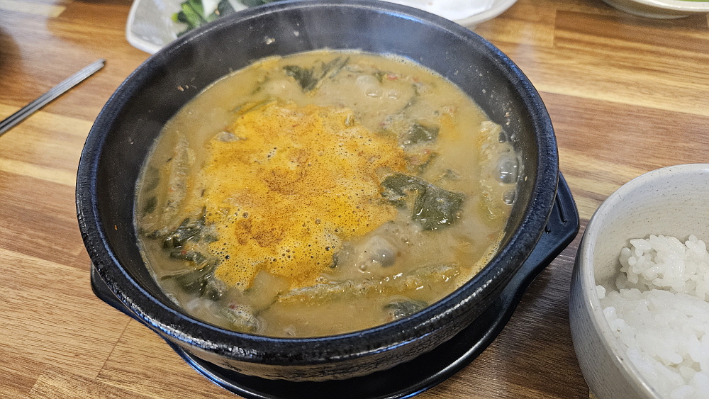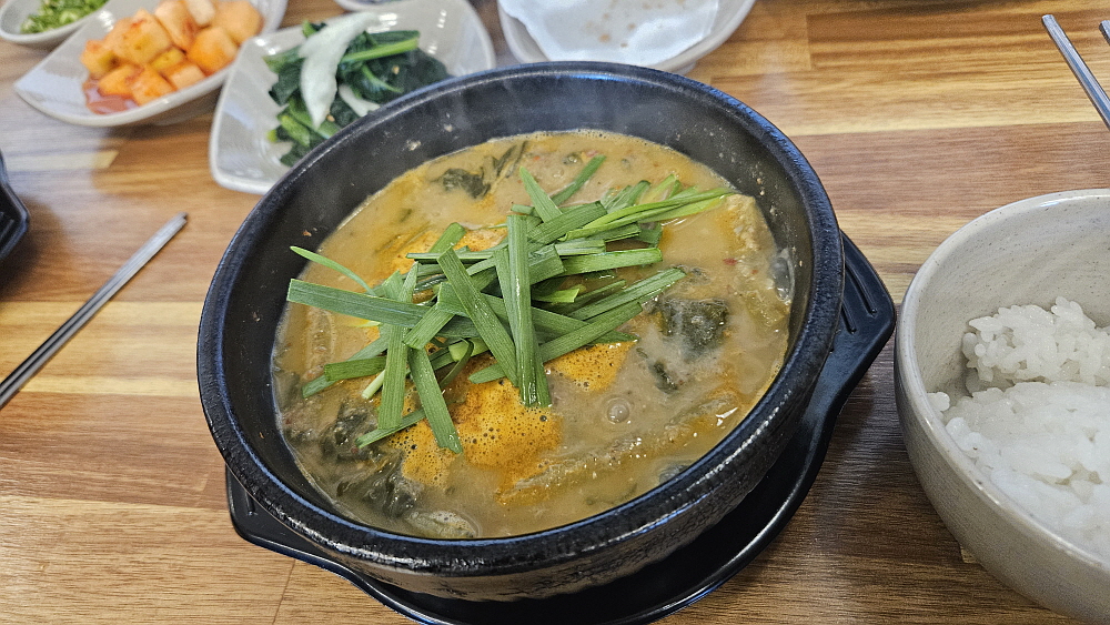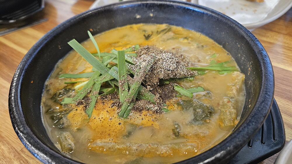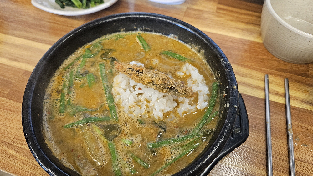다소 가격이 비싼 추어튀김도 주문했다. 몇 마리 안 되어 보이는데 가격은 20,000원이다. 비싸긴 하다. 하지만 시기적으로 그런 것인지, 여기가 원래 그런 미꾸라지를 쓰는지 살이 통통하게 오른 미꾸라지들이라 맛은 괜찮았다. 하긴 튀기기만 하면 웬만한 음식은 다 맛나다고 하지 않던가? 간단하게 추어튀김을 먹고 있노라니 오늘의 주인공 추어탕이 나왔다. 우리는 바로 이런 비주얼을 기대했다. 진한 된장의 색과 진득한 국물의 조화 말이다. 거기에 밥 한 그릇이면 정말 임금님 밥상이 부럽지 않다. 저 진한 국물 속에 미꾸라지가 과연 몇 마리나 들어 있을까? 너무 잔인한 생각인가?