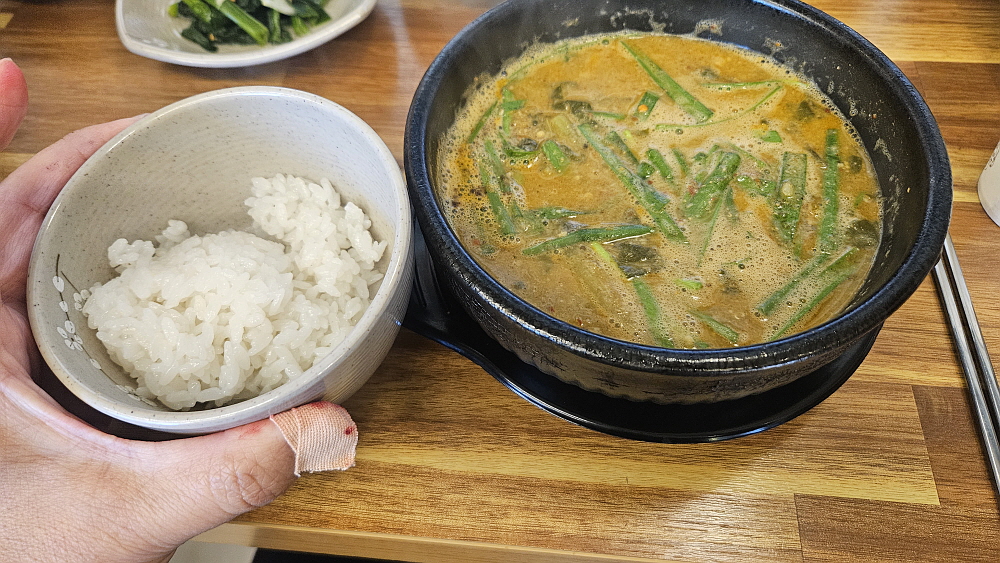 부추와 마늘, 그리고 산초가루와 들깨가루도 넣었다. 산초와 추어탕이 잘 맞는다는 이야기를 들은 것 같다. 모든 음식은 궁합이 있기 마련이네 산초와 미꾸라지도 그렇다고 들었다. 맞는지 모르겠네... 추어탕에는 늘 밥을 말아 죽처럼 먹는다. 다른 사람들도 비슷하게 먹는 것 같다. 여느 국밥과 달리 추어탕은 진하게 나온 국물을 죽처럼 먹어도 불만이 없다. 뜨거운 국물 탓에 부추는 들어가자 마자 바로 야들거리게 변하고, 진한 국물에 넣은 들깨가루와 산초가루도 어디로 갔는지 모를 정도로 바로 녹아 들어 버린다. 추어탕의 진한 맛에 모두 보조 역할이 되는 것이다.