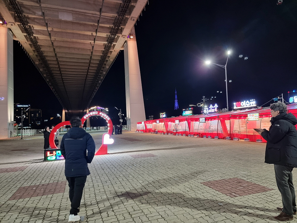 여수에서 하는 워크숍을 거리의 압박에도 불구하고 참여하게 된 이유 중에 이날 밤에 찾아간 낭만포차 거리에서의 한 잔이 분명히 있다. 여수를 몇 번 다녀왔지만, 이상하게도 낭만이 넘친다는 포장마차 거리를 가보지 못했기에 더욱 가고 싶었다. 사실 포장마차는 이런 겨울 보다는 여름이 분명 더 어울리는 곳이지만 그래도 아쉬운대로 이 겨울이 가기 전에 한 번 가보는 것도 나쁘지 않은 일이다. 우린 숙소에서 택시를 타고 거의 20분 정도 이동해서 포차거리에 올 수 있었다. 그런데 역시 바닷가라 그런지 바람이 장난이 아니었다.