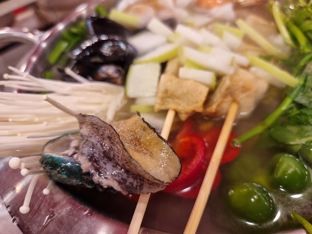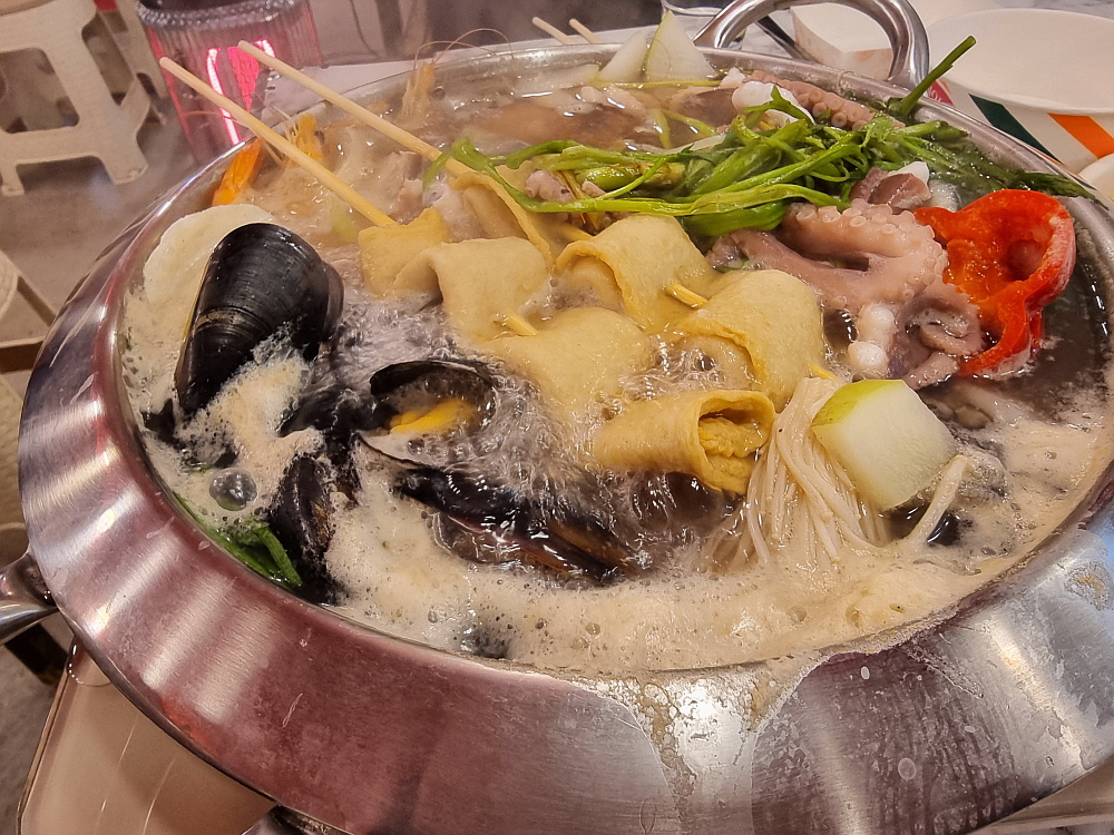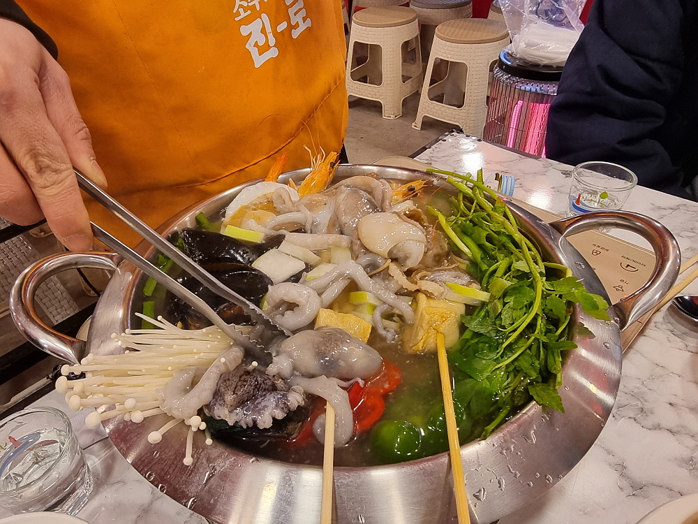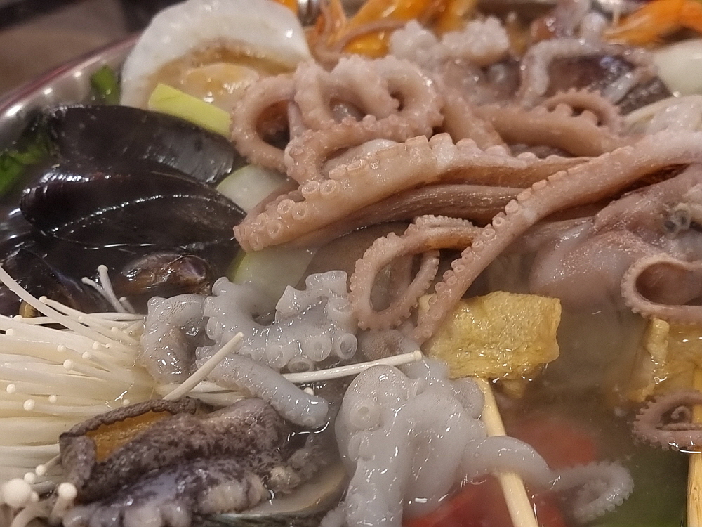 안주가 여러 종류가 있지만 가격은 모두 4만 원이다. 가격이 비싼 편이긴 한데 이런 안주는 사실 잘 보지 못했던 것들이다. 현지에 맞게 만들어진 것이리라 생각했다. 우린 그 중에 추운 날씨를 감안하여 먼저 해물연포어묵탕을 주문했다. 사실 여기 안주 중에서 가장 노멀해 보이는 아이템이기도 했다. 어묵탕이야 어딜 가나 비슷하지만 여긴 연포탕이란다. 낙지가 들어가는 어묵탕은 쉽게 보지 못하는 것이다. 그런데 왜 안주 구성이 이렇게 균일가로 되었을까? 그 이유는 잘 모르겠다.