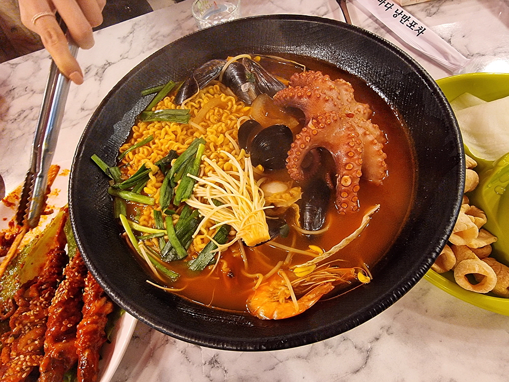 옆 테이블에서는 낙지호롱과 라면도 있었다. 이 라면이 참 오묘한 것이다. 그렇게나 흔하게 자주 먹는 음식인데 이런 곳에서 해물 몇 개 넣어 끓이면 다시 둘도 없는 별미가 된다. 한국 사람과 라면을 뗄래야 뗄 수 없는 관계 맞는 것 같다. 우린 여기서 꽤나 술을 마셨다. 그리고 다들 뿔뿔히 숙소로 들어갔다. 2차를 가기 위해 남은 우리 같은 몇 사람을 빼고 말이다. 낭만포차 바로 옆에는 그냥 술집들도 많다. 다행히 문을 연 호프집이 있어 거기서 다시 여흥을 즐겼다. 글쎄 너무 추운 계절에 와서일까? 여수의 상징인 낭만포차를 그렇게 피부에 와 닿게 즐기지는 못한 것 같다. 여름에 다시 와야 할까?