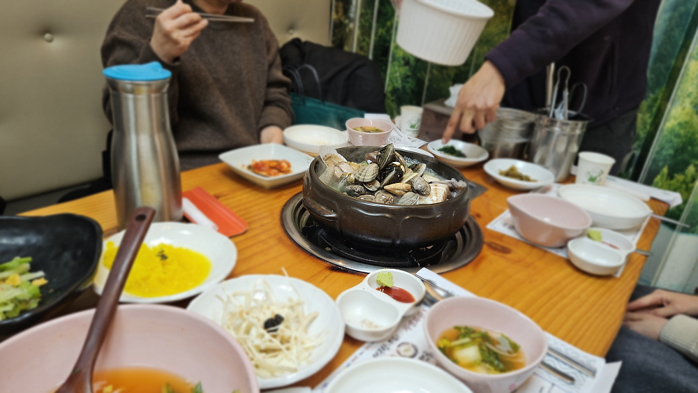 예약을 해 두었기 때문에 식당 안으로 들어가니 벌써 주 메뉴가 불위에 올라가 있었다. 이제 끓여 먹기만 하면 된다. 여러 반찬들이 나왔는데 특히 감가전이 맘에 들었다. 해신탕을 그냥 점심으로 먹는 것은 좀 아깝다는 생각이 들었다. 이렇게 좋은 안주는 저녁에 술 한 잔 하면서 먹어야 제맛인데 말이다. 이집은 전체적으로 조미료를 많이 넣지 않는 담백하고 깔끔한 맛이 특징인 것 같았다. 점심시간임에도 식당안은 입추의 여지가 없었는데 그만큼 동네에서 사랑받는 집이라는 뜻일 것이다. 저렴하지 않은 가격에도 불구하고 이렇게 손님몰이를 한다는 것 자체가 대단한 실력이라는 의미일 것이다.