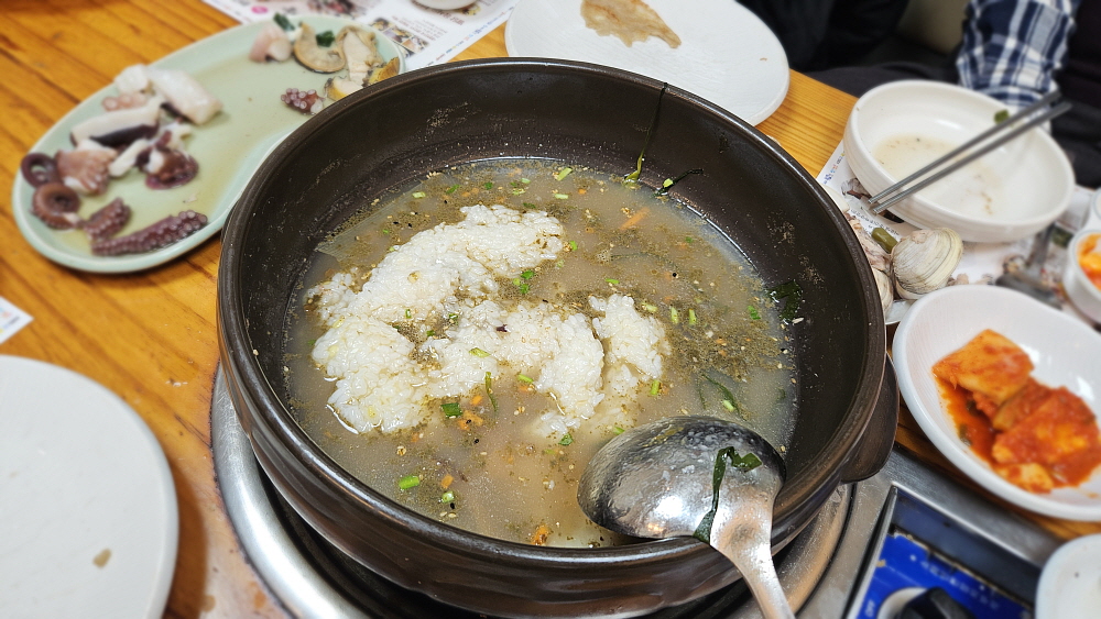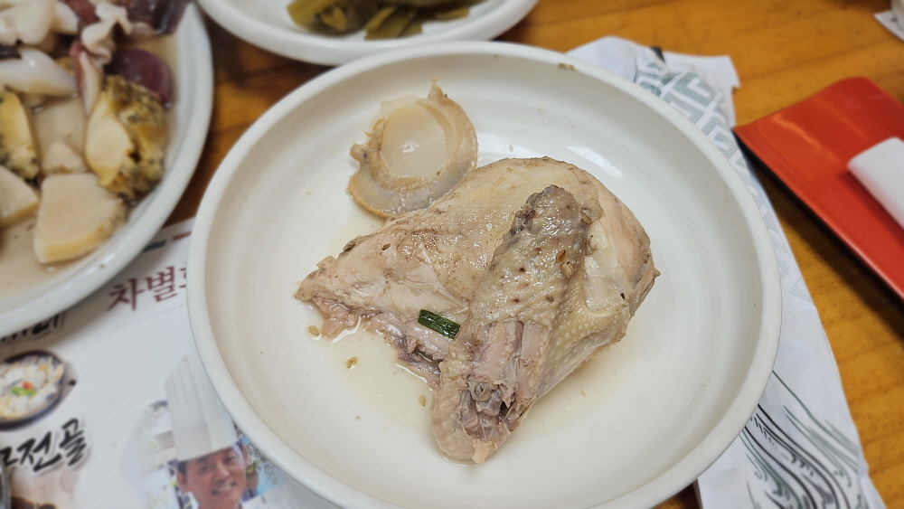 특히 눈에 띈 것은 삼채나물을 무친 것이었는데 인삼보다 사포닌 함유량이 더 많은 채소란다. 그럼 인삼보다 좋다는 뜻인가? 그런데 왜 처음 보다시피 했지? 아무튼 잘 익은 전복과 낙지, 그리고 조개들을 먹기 시작했다. 맛이야 말로 표현하기 어려울 정도로 신선한 것이었다. 당연한 일이다. 살아 있는 녀석들을 그대로 넣었으니 말이다. 야들 야들한 전복은 영양과 맛이 함께 살아 있는 대표적인 해산물 아니던가... 밥을 따로 먹을 필요가 없다는 이집의 해신탕은 먹는 동안 그냥 보약을 먹는 느낌이었다. 힘 쓸 일도 없는데 이렇게 좋은 음식을 먹으면 그 영양을 다 어디에 써야 할까?