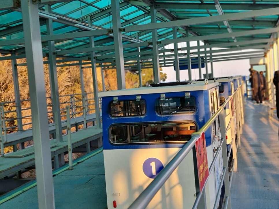 한 겨울 연말에 과연 이 모노레일을 타는 사람이 얼마나 있겠는가 생각했는데 예상과 달리 사람들이 꽤나 많았다. 우리가 도착한 시각은 4시가 좀 넘어서고 있었는데 한 바퀴 타고 돌아 오는 시간이 40분이 넘게 걸리기 때문에 어쩌면 올 때는 해가 질 수도 있다는 말을 들었다. 그렇게 오랜 시간을 타는 줄은 몰랐다. 보통 케이블카 처럼 길어야 15분 남짓일 것이라 생각했는데 영 아니었다. 두 사람 왕복 가격이 26,000원 인가 그랬다. 싼 가격은 아니지만 거리가 워낙 기니까 이해가 갔다.