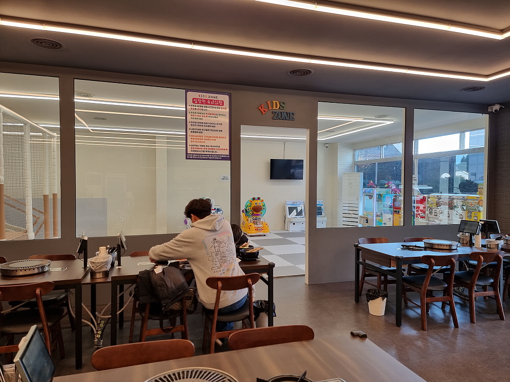 포천동 시내 농협 옆에는 얼마 전 문을 연 고깃집이 있다. 원래 이 자리는 오랫동안 철물점 겸 그릇가게가 있던 곳이다. 꽤나 넓은 면적을 가진 곳인데 한동안 업종 변경을 위한 인테리어 공사를 하더니 드디어 고깃집으로 탈바꿈 한 것이다. 그릇가게일 때 가끔 들러 뭔가 산적이 있는데 그 땐 이 가게 규모가 엄청 커 보였다. 하지만 이번에 고깃집이 된 뒤로 가보니 그렇게까지 크다는 느낌을 받지 못했다. 어떤 변화가 있었을까? 요즘 식당들 같지 않게 실내에는 커다란 아이들 놀이터도 있었다. 말 그래도 키즈 프랜들리 식당인 셈이다.