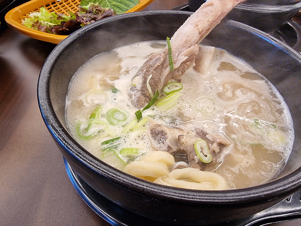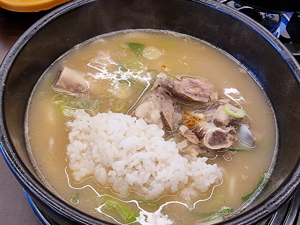 갈비탕은 커다란 갈비대 두 개가 들어 있었다. 펄펄 끓는 갈비탕 국물이 무서워 가위를 집고 갈비의 살을 분리했다. 야들 야들해서 그냥 들고 먹어도 된다. 원래 갈비는 손으로 들고 뜯어야 제맛이긴 하다. 국물도 시원하고, 갈비살도 묵직하니 제법 많았다. 갈비탕도 국밥인지라 밥을 말아 갈비살과 함께 먹는 것이 정석이다. 점심메뉴가 단촐하게 두 가지 이기 때문에 고민할 필요는 없다. 슬쩍 주변을 둘러보니 손님의 80%은 갈비탕을 먹고 있었다. 아무래도 계절적으로나 든든함으로는 갈비탕을 선택하는 것이 더 어울린다고 본다.