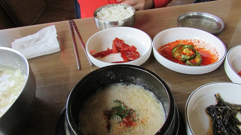 속초 순두부가 처음인지라 어떤 것을 주로 먹어야 하는지도 모르지만 일단 거의 실패하는 일이 없는 비빔밥과 순두부를 주문했다. 대청마루라는 이름에 걸맞는 엄청난 큰 마루를 가진 집에서 조금 시간을 두고 기다리자니 비빔밥과 순두부가 나왔다. 아마도 이 반찬들은 무엇을 주문하든 이런식으로 나오는 모양이다. 인상적인 것은 새우로 담는 젖갈이었는데 비린내도 나지 않고 달달한 것이 맛이 좋았다. 오징어젖과 더덕은 너무 달아 젖가락이 잘 가지 않았다. 요즘은 TV에 나온 것처럼 달게 만드는 것이 대세이긴 한가보다. 어디가나 설탕을 다 쓰지 못해 안달난 사람들처럼 설탕을 들이 붓는다. 나물들은 나름 좋았으나 역시 약간 달달했다.