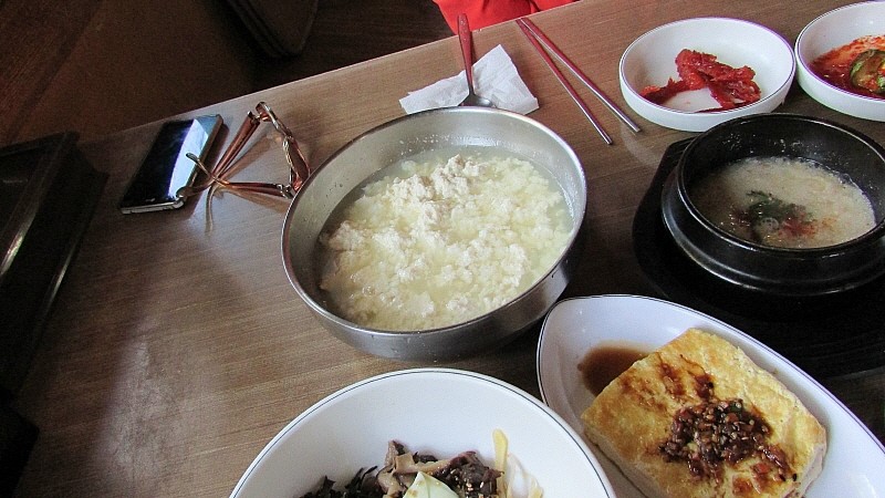 비빔밥이야 맛있는 고추장과 나물 서너 종류만 있어도 어느 정도는 맛을 내니 큰 감흥이 없었지만 손두부는 나름 괜찮았다. 잡내가 거의 없는 맑은 두부라는 말이 나올 정도였다. 자당어른의 손두부가 고소하고 묵직한 두부라면 이곳의 손두부는 맑고 투명하기까지 한 슬림하고 부드러운 것이었다. 굳이 점수를 메기자면 그래도 친구 어머니의 그것이 더 낫긴 했지만 이곳의 두부도 다른 곳에서는 찾기 힘들 정도의 내공을 가진 것이 틀림없었다. 부드러운 두부를 간간한 간장을 넣어 먹는 맛은 서양의 어느 에피타이저나 디저트도 흉내 낼 수 없는 식감과 건강을 선사한다. 이날의 선택은 좋았다고 자평하고 싶다.