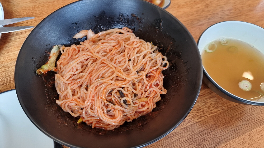 식당 안으로 엄청 깔끔한 편이었고, 분위기도 산뜻했다. 다들 주문하는 고기완자가 무슨 맛일지가 궁금해졌다. 그렇게 국수가 나왔는데 비주얼만 보면 여느 국수집과 크게 다른 것은 아니었다. 결과적으로 말하자면 여긴 잔치국수 맛집이다. 잔치국수의 멸치 육수가 어찌나 진하던지 왜 동네 맛집이라 하는지 알 것 같은 순간이었다. 이렇게 진한 국물은 다른 곳에서 보기 힘든 것이다. 하지만 비빔국수는 국수라기 보다는 쫄면의 양념같았다. 이 말은 비빔국수라의 양념보다는 면을 쫄면으로 바꿔 파는 것이 더 맞을 것 같다는 것이다. 묘한 차이가 있지만 아무튼 그런 느낌이었다.