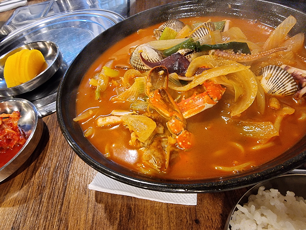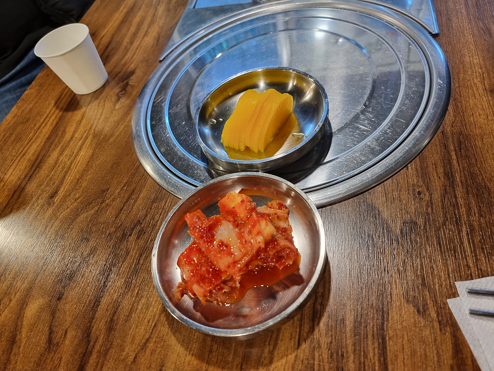 그런데 들어가 보니 가격이 무척 저렴한 편이었다. 고기값도 그렇지만 전체적으로 가성비가 좋은 곳이다. 우린 점심 메뉴인 꼬막짬뽕과 김치찌개를 주문했다. 김치찌개에 언제고 먹는 음식이지만 꼬막짬뽕은 보기 드문 아이템인데 중국집도 아닌 이곳에서 먹게 될 줄 몰랐다. 밥집답게 주문을 하고 나면 주인장이 직접 만들었다는 집에서 볼 수 있는 반찬들이 제법 많이 나온다. 이중 가장 맘에 들었던 것은 무말랭이였다. 이런 자연스러운 반찬을 식당에서 먹기란 쉽지 않은 법인데 주인장의 정성이 느껴지는 것이 정말 아는 사람 집에 방문한 기분이었다.
