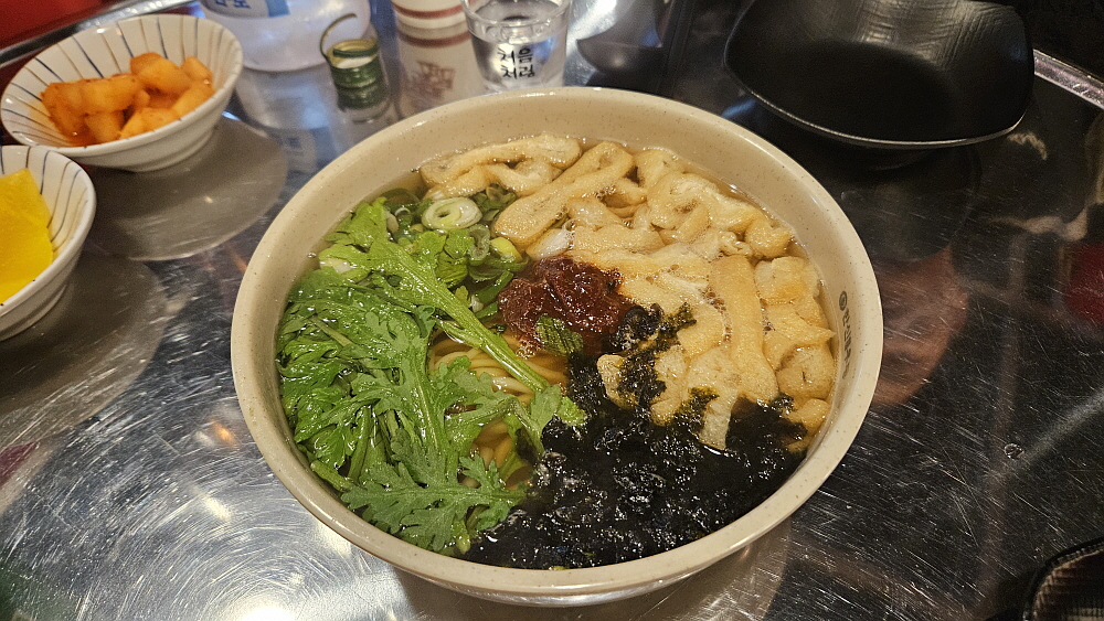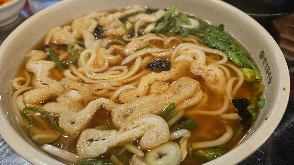 테이블도 예전 방식의 동그란 쇠로 만든 것이다. 그리고 더 놀란 것은 메뉴인데 이것도 정말 예전 술 마시고 집으로 가다 잠깐 들러 먹었던 포장마차의 우동을 그대로 재현되어 있었다. 물론 당시의 포장마차보다는 푸짐하고 깔끔하다. 그리고 구성물도 다양하다. 하지만 가격이나 분위기는 거의 그대로이다. 아마 이런 컨셉을 추구하는 시스템이 바로 한신즉석우동인가보다. 분위기는 포장마차라고 하지만 주문은 첨단의 키오스크로 해야 한다. 그런데 가격도 참 놀랍다. 포장마차처럼 저렴했다. 이렇게 팔아서 과연 번화가 상점의 운영비가 나올까 싶을 정도로 착한 가격이다. 다른 메뉴들을 봐도 비싼 것이 없다.