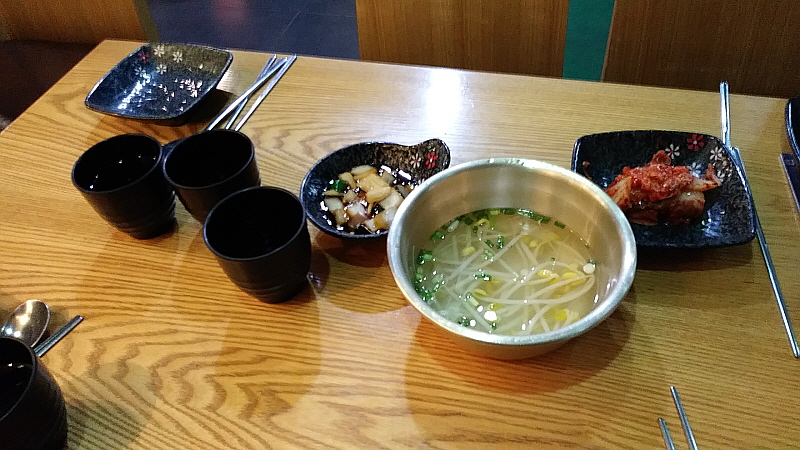 남자 장정 네 명이 먹다보니 많아 보이던 그 안주들도 금새 바닥을 드러냈다. 이것도 어찌보면 만고의 진리 같은 것인데 술을 덜 마시는 사람이 확실히 안주 탐은 많다. 대학시절처럼 주머니 가벼운 상황도 아니니 안주 많이 먹는다고 타박하기도 뭐하고 어쨌든 그렇게 막걸리 두 주전자를 비우기도 전에 안주가 없어지고 말았다. 녹두 빈대떡의 고소함은 정말 좋았지만 역시 보기 좋은 떡이 먹기도 좋다고 골뱅이는 좀 아쉬웠다.
