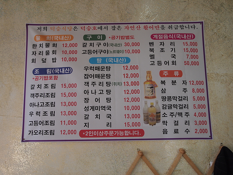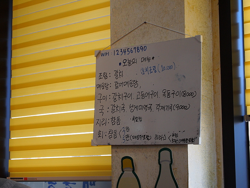 그러다 이집을 발견했다. 주택가 골목 안쪽에 있지만 낮부터 손님들로 북적이는 식당말이다. 덕승식당이라는 이름은 같이 운영한다는 배의 이름과 같은 것이란다. 덕승호에서 잡은 생선과 해물들이 이집에서 손님상에 바로 올라 오는 방식이었다. 나름 서귀포의 덕승그룹인 셈이다. 마치 소흘읍 사무소 앞의 한우고기집이 직접 농장을 운영하는 것과 비슷한 셈이다. 아무튼 여기는 중국인 관광객이 없었다. 분명 내 예상대로 현지 사람들이 즐겨 찾는 그런 집인 셈이다. 우리는 당연히 계획대로 갈치조림을 주문했다. 다른 생선조림과 구이도 있었지만 제주에 온 이유 중에 하나가 갈치조림이었기에 별 다른 망설임이 없었다.