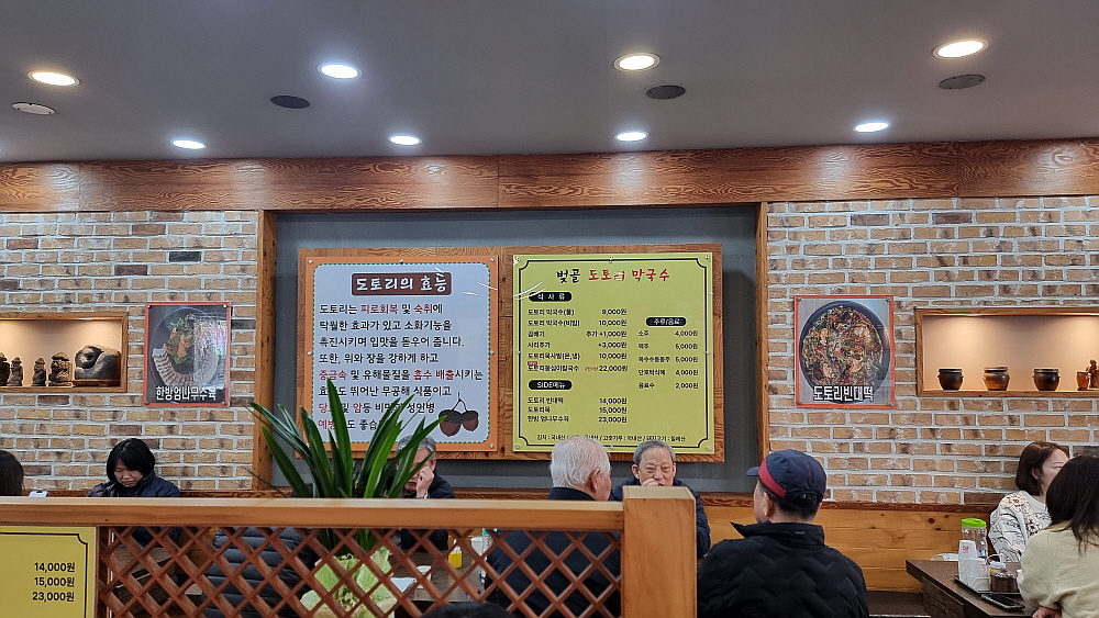 다른 집들과 달리 여긴 김치가 열무김치였는데 면과의 조화가 괜찮았다. 보통 막국수 집에 오면 찐만두나 메밀전 같은 서브 메뉴도 주문을 하게 되는데 여긴 그럴 수 없었다. 막국수보다 오히려 서브 메뉴들의 가격이 더 비쌌기 때문이다. 도토리 묵이나 도토리 전이 14,000~15,000원 이기에 선뜻 주문하게 되지 않았다. 수육은 더 비싸고 말이다. 그냥 가볍게 막국수보다 저렴한 가격에 먹을 수 있는 서브 메뉴가 하나 있었으면 하는 생각이 들었다. 아마 그러면 사람들이 더 많이 주문을 할텐데 말이다.