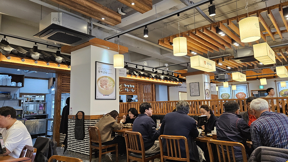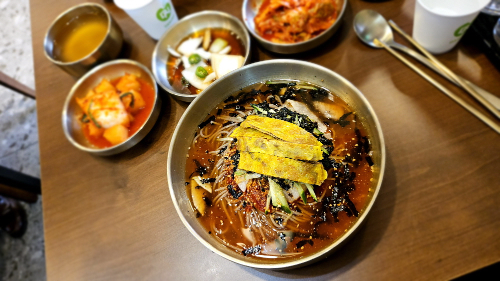 식당의 상호인 육전은 말 그대로 소고기로 전을 붙인 것이다. 막국수에 그것을 올려주는 육전 막국수라는 것을 우리가 주문했다. 육전이 올라간 국수는 진주냉면 같은 느낌의 국수가 되는 것이다. 물론 한우는 아니겠지만 그래도 육전이 올라간 막국수가 11,000원이면 합리적인 가격인 것 같다. 물론 여긴 육전이 들어간 국밥이 주력인지라 주변 손님들 중에 막국수를 먹는 사람은 흔치 않았다. 하지만 우리야 막국수를 좇아 불나방처럼 찾아 들어왔으니 다른 메뉴는 관심이 없다. 자칫 웨이팅을 할 수도 있었지만 다행히 들어가자마자 자리를 잡고 앉을 수 있었다.