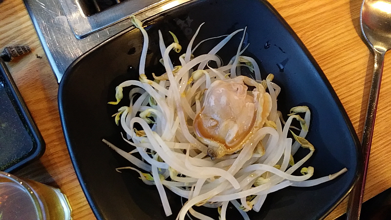 술 먹으러 오면서 몸에 좋으라고 홍삼을 챙겨 온 동생 덕에 오늘은 그래도 좀 몸을 보 하면서 먹을 수 있게 되었다. 홍삼을 소주에 타 마시면 더 많이 먹게 된다고 오히려 해로울 수 있다고 말하던 사람도 있긴 했다. 하지만 어쨌든 그 마음이 갸륵한 것 아닌가? 형님 몸 생각해 가면서 술을 마시라는 배려 말이다. 그렇게 우리의 조개 만찬은 시작되었다. 여긴 주로 조개가 메인으로 많이 나가는 것 같았다. 커다란 팬 위에 각종 조개와 굴, 숙주 등을 얹어서 아주 푸짐하게 한 상이 나왔다. 국물도 떠 먹을 수 있어서 저녁으로도 술 안주로도 제격이었다. 다만 국물이 좀 너무 짜다는 생각은 들었다. 조개 자체가 짠데 아마도 거기에 다시 뭔가 조미료 같은 것을 가미했는가 보다. 우리는 연신 물을 부어가면서 먹었다. 국물이 계속 졸아드니 짠 기운이 없어지질 않았다.
