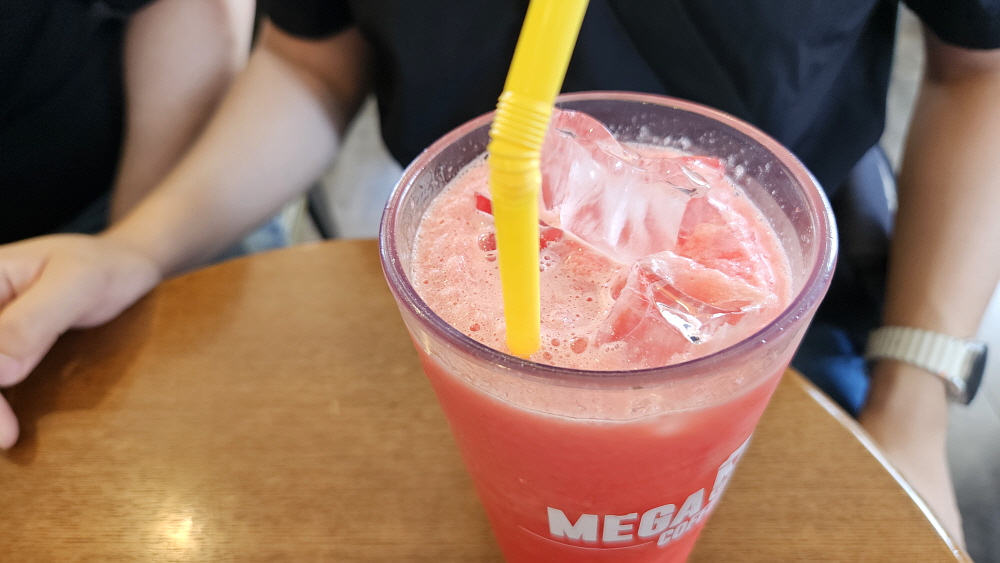아무리 그래도 그렇지... 음료가 나오기도 전에 다 먹어버리면 애초의 계획에서 틀어지는 것 아닌가... 맛있는 소금빵을 시원한 음료와 함께 먹어야 제격인데 말이다. 하지만 우린 다들 수긍하는 분위기였다. 사실 작지 않은 소금빵이지만 먹다보면 속이 비다시피 하여 몇 입 먹지 않아도 순식간에 빵이 입안으로 사라진다. 음료를 마시고 자시고 할 겨를이 없는 것이다. 아무튼 우리는 결국 음료를 다 마시고 가는 길에 몇 봉지를 더 살 수밖에 없었다. 이러다 소금빵으로 배를 채우겠다. 구읍뱃터의 메가커피는 규모가 큰 편이다. 우리는 여길 몇 번이고 왔었다. 하지만 이날처럼 고마운 적은 없었다. 너무 시원하고, 맛나고, 소금빵을 맛보게 해주었으니 말이다.