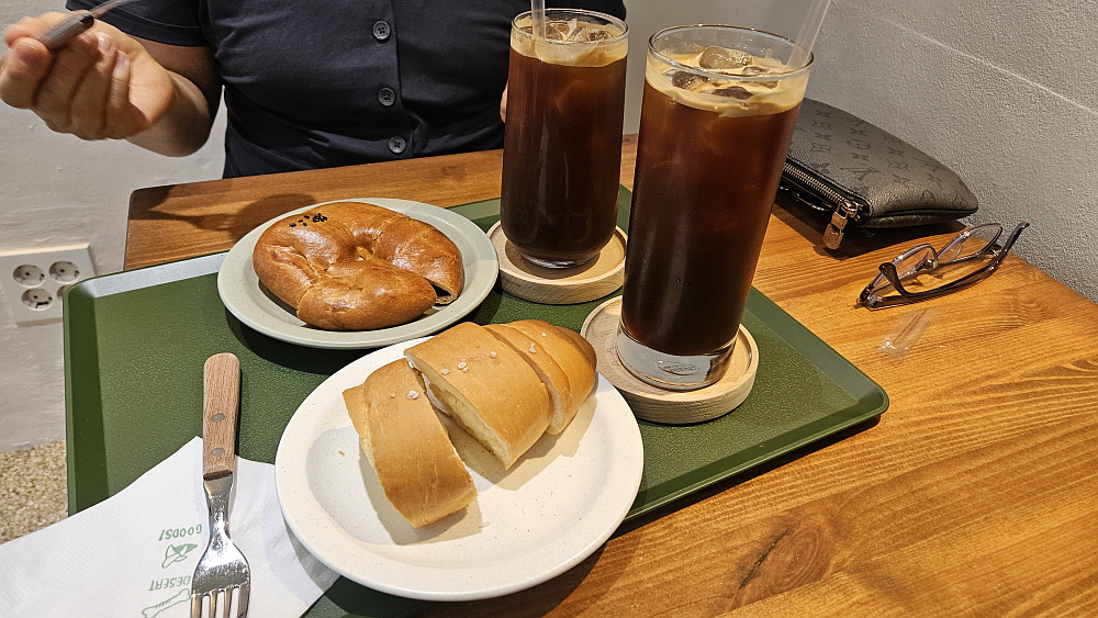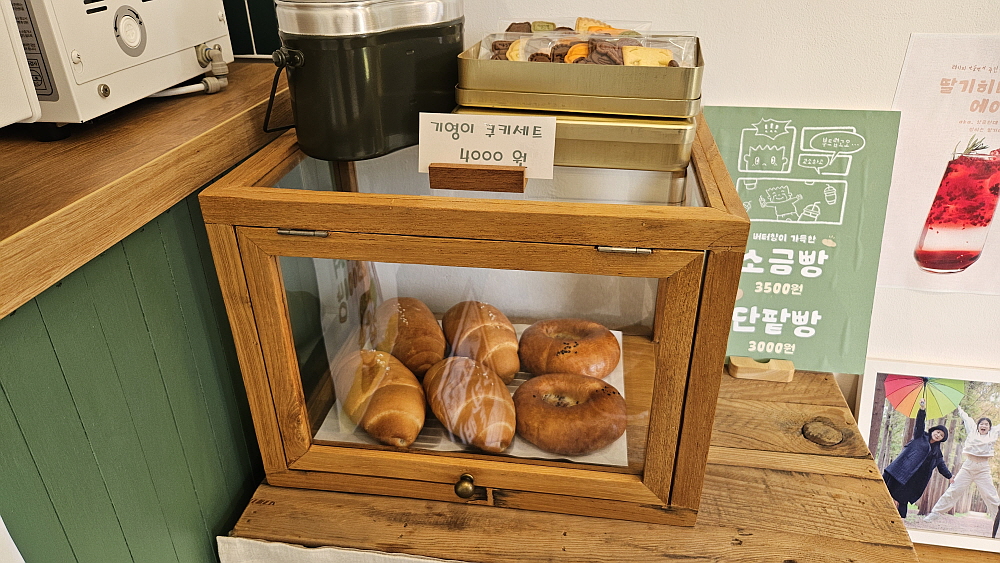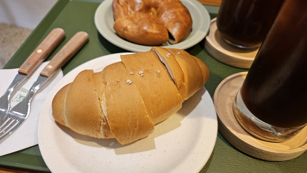 일부러 이곳에서 간단하게 아침을 먹기 위해 서둘러 출발했다. 11시에 오픈을 한다고 하는데 우리가 도착한 시간이 11시 20분 정도였다. 그런데도 자리가 없을 지경이었다. 과연 사람들 사이에서 소문이 났다고 하더니 인기가 대단하다. 물론 주말이라 더 그랬을 것이다. 과거 감성이 만화와 함께 살아 있는 인테리어가 사람을 차분하게 만들어 주는 이곳은 분명 카페가 맞다. 우린 소금빵과 단팥빵을 함께 주문했다. 카페 한 쪽에서는 검정고무신의 또 다른 작가인 이우진 작가님이 캐리커쳐를 그려주고 있었다. 카페이자 작업실? 그런 분위기였는데 그것이 또한 검정고무신의 감성을 더 살려 주는 것 같았다.