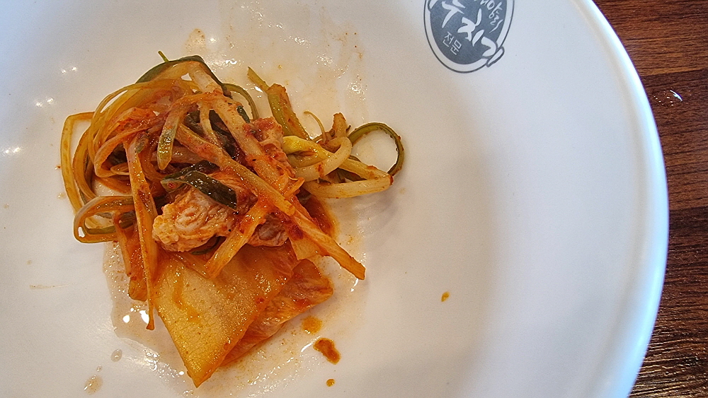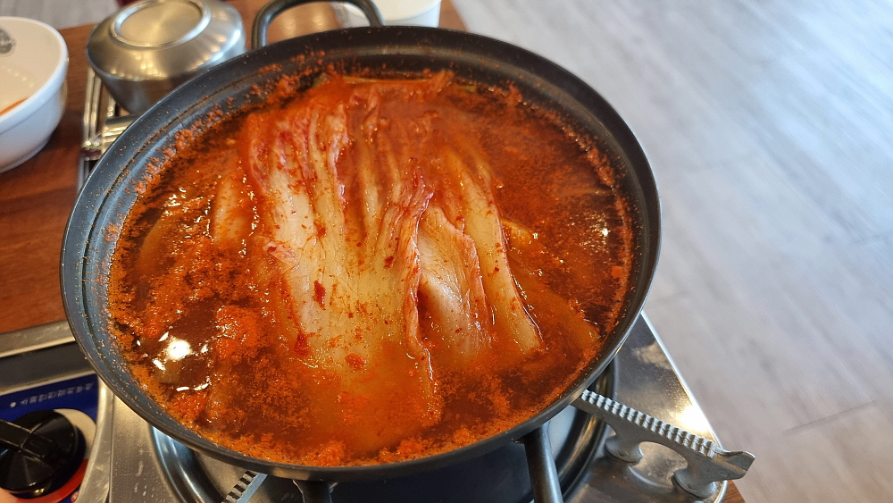 손님상에는 조리가 되지 않은 그냥 김치가 담겨진채로 나온다. 이제부터는 손님이 알아서 역할을 해주어야 하는 것이다. 김치찌개는 두루치기보다 아무래도 국물이 더 많다. 그리고 두루치기는 야채같은 다른 내용물이 들어 있다. 둘 다 돼지고기가 듬뿍 들어간 것은 맞다. 김치찌개에는 돼지고기 말고도 참치 통조림을 넣기도 하고, 꽁치나 고등어 통조림을 넣어 먹기도 한다. 사람에 따라 특이하게 차돌박이를 넣기도 하고, 그냥 두부만 넣어 먹는 사람도 있다. 어떤 조합을 하든 김치라는 주 재료가 가지고 있는 맛을 최대한 끌어내주는 고마운 존재들이다.